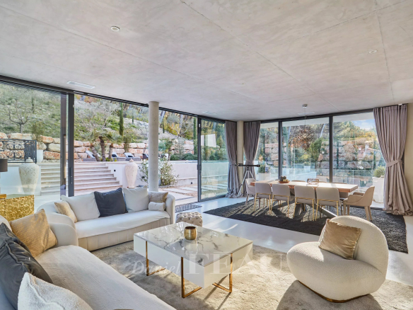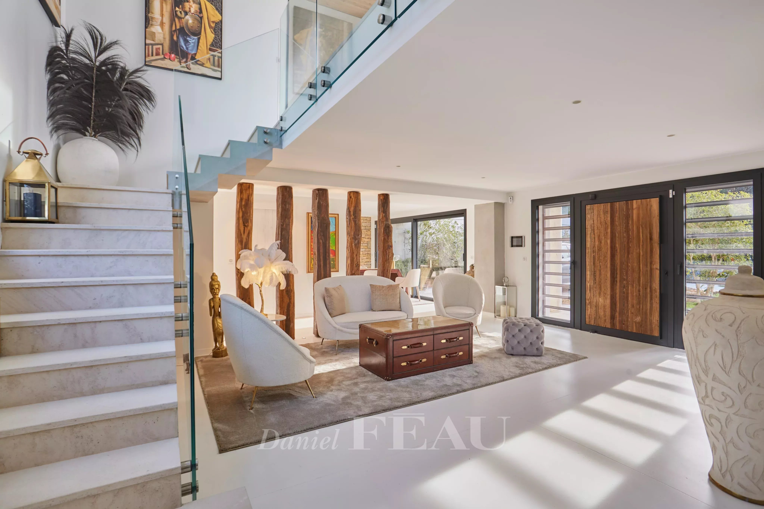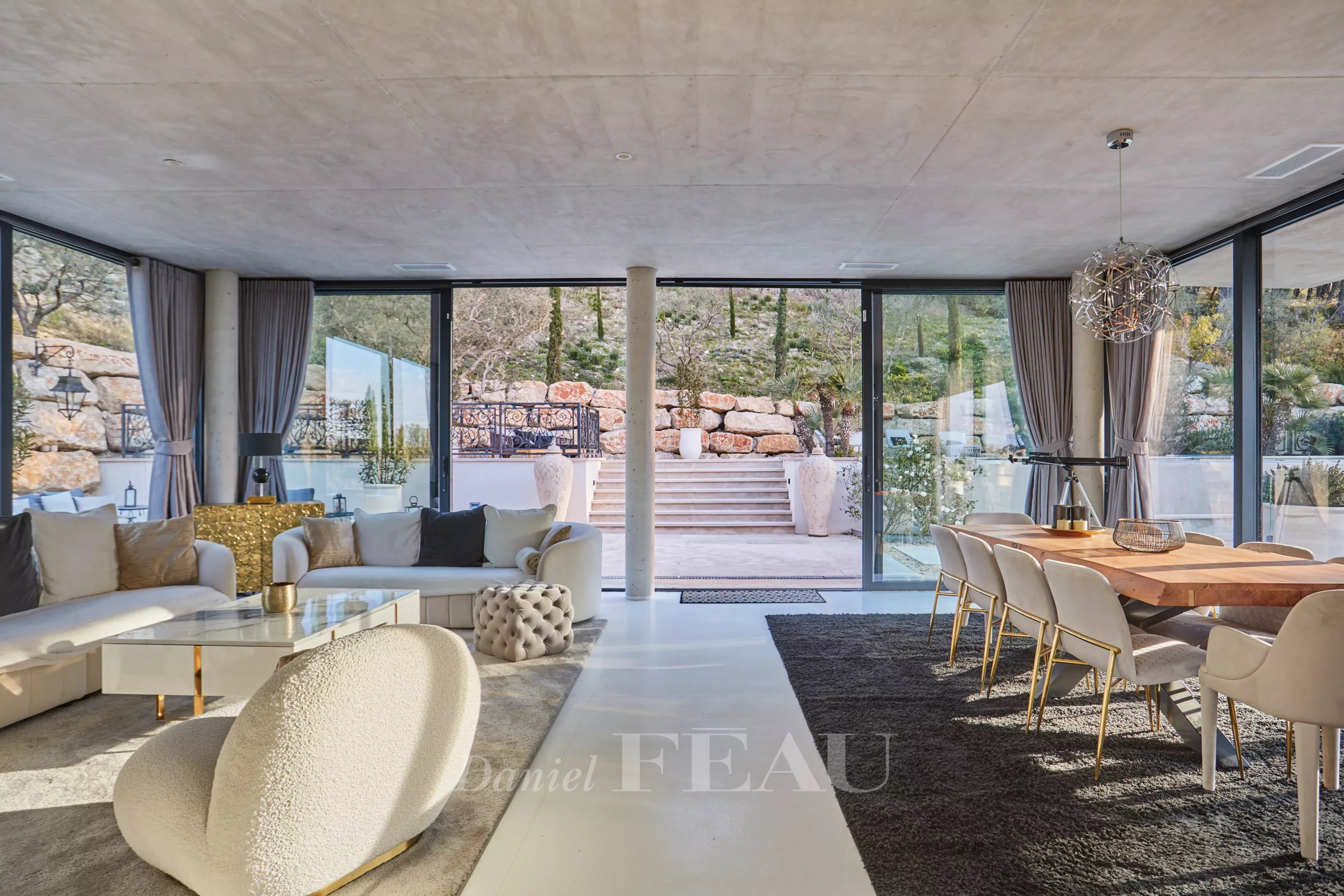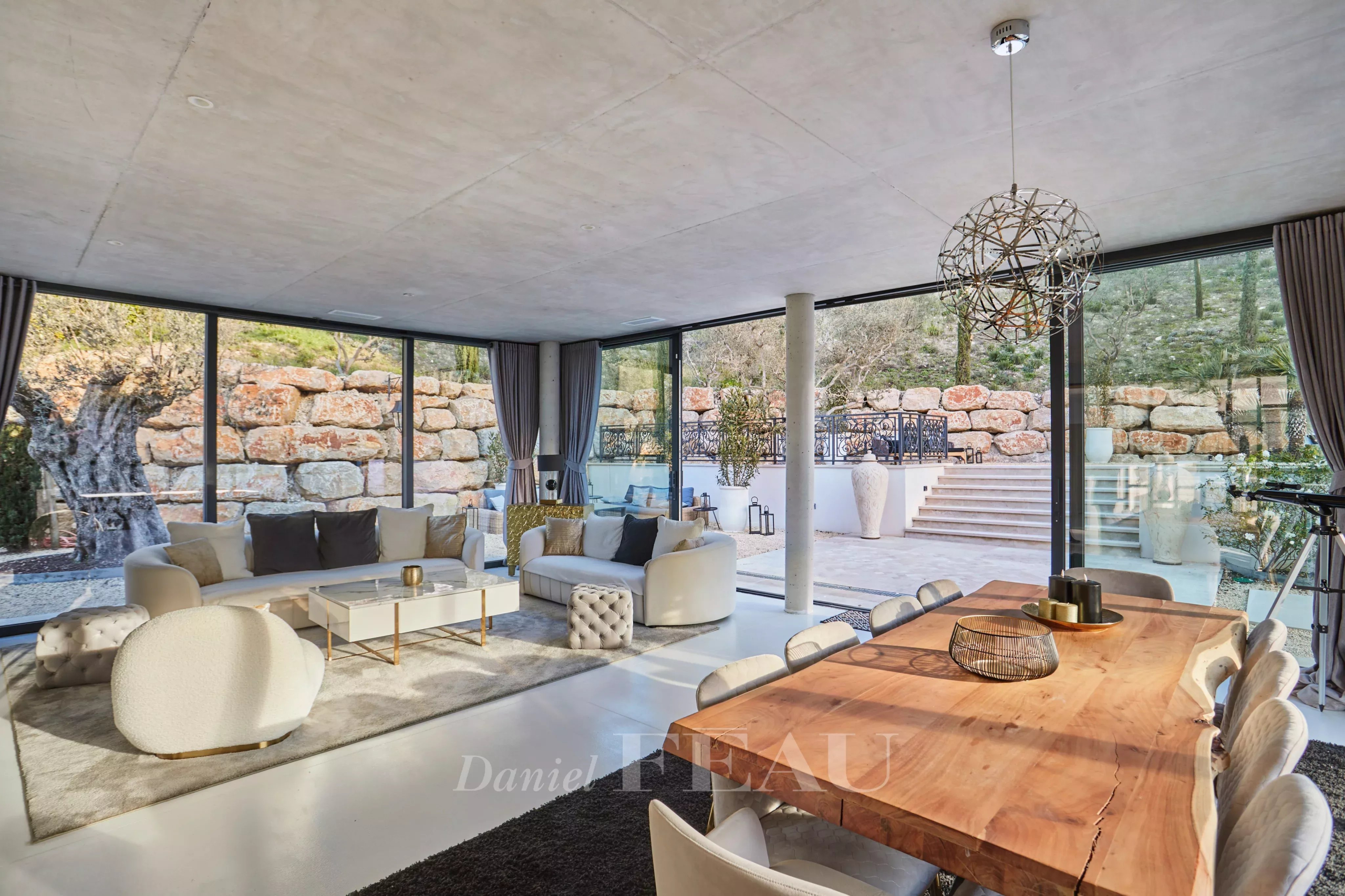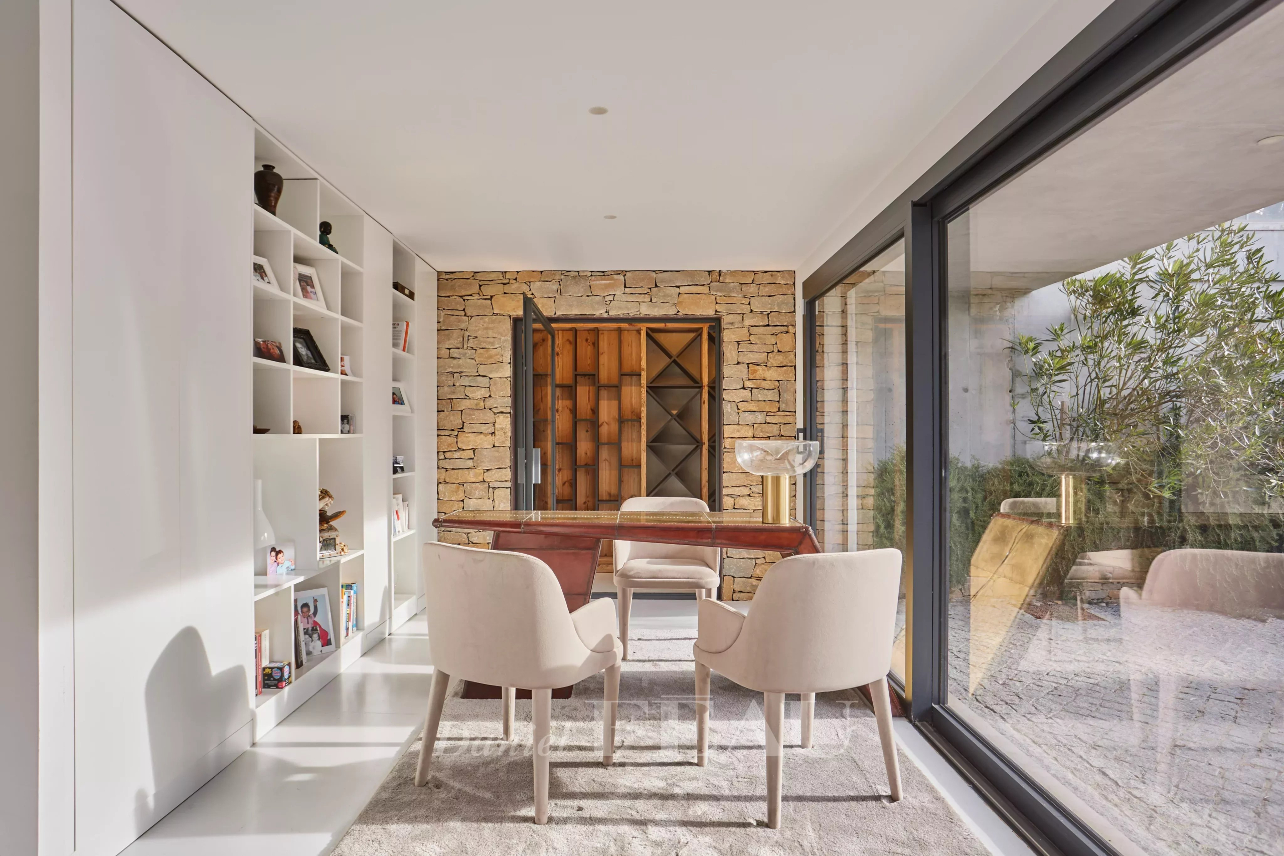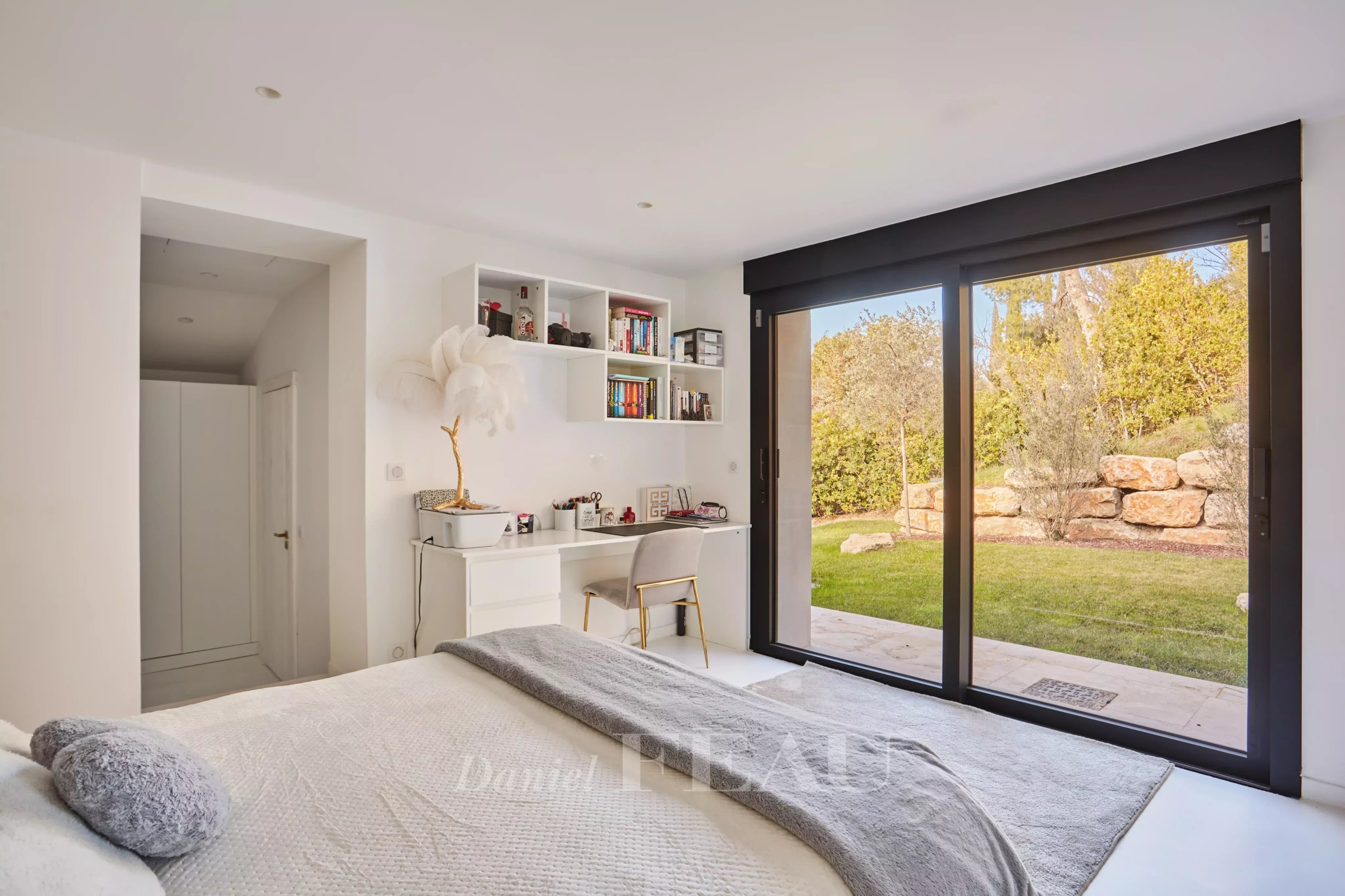A 10 minutes d’Aix en Provence, au calme, rare propriété contemporaine nichée dans un environnement de verdure, offrant une très belle vue dégagée sur un terrain de 4070 m² paysager.