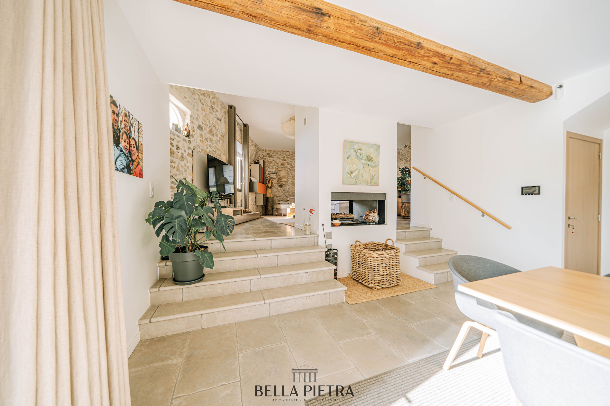 Prestations actuelles et rénovation aboutie : plancher chauffant et rafraîchissant, cheminée, menuiseries aluminium.Aucun travaux à prévoir.