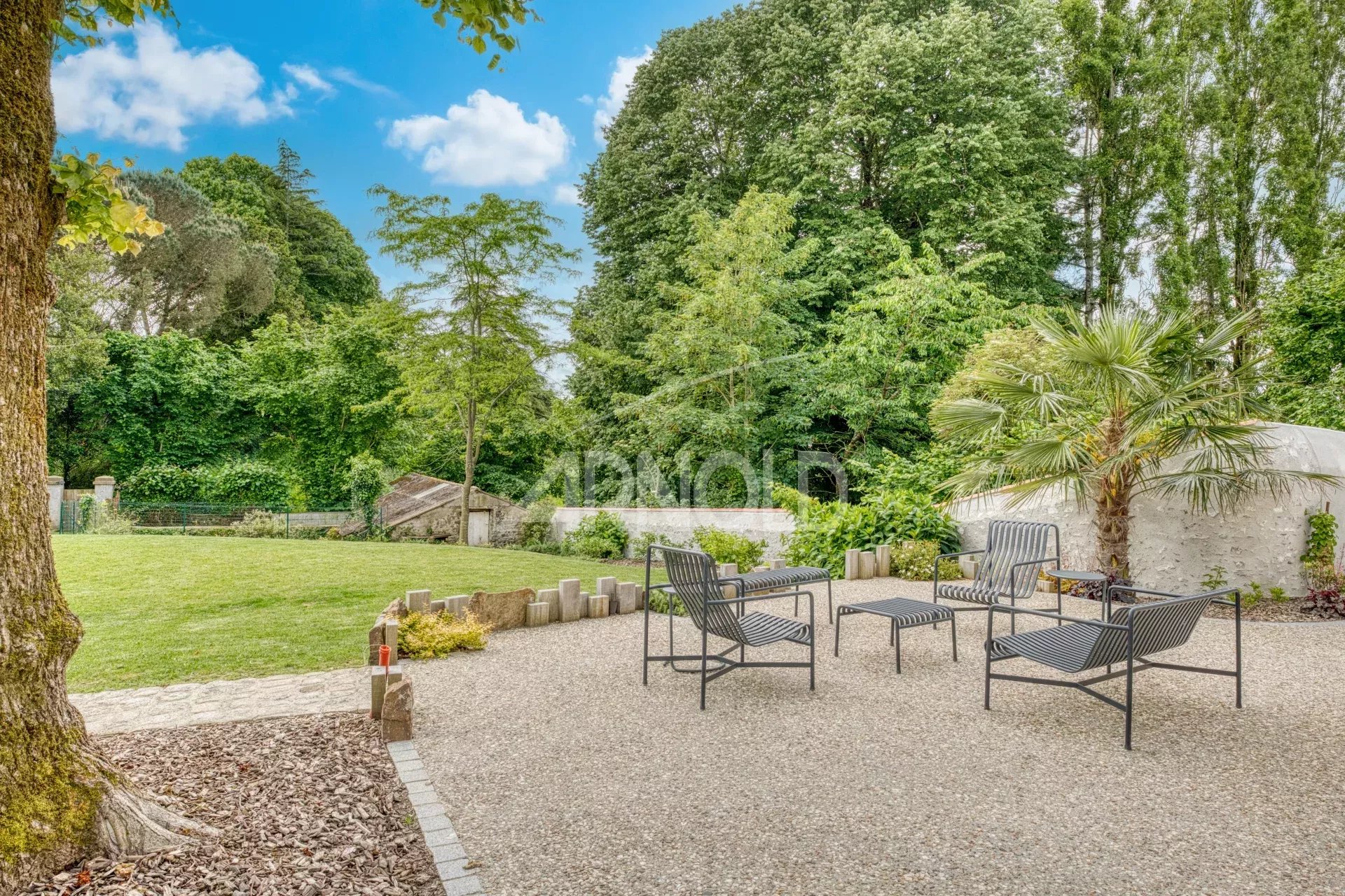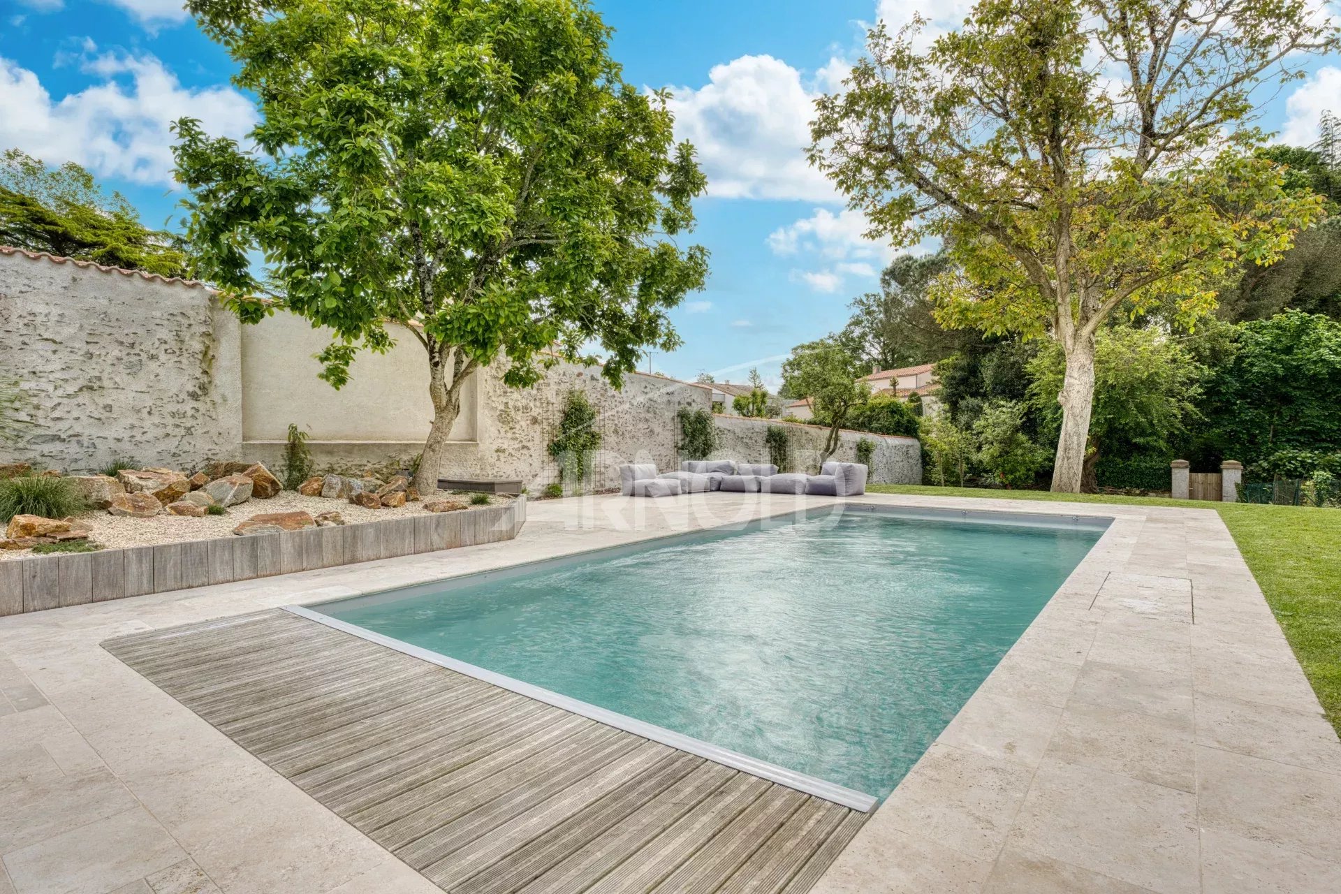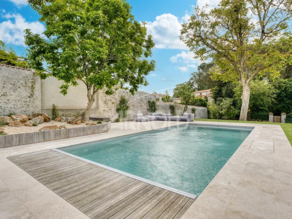La parcelle de 1900m² est magnifiquement paysagée disposant d’une piscine chauffée sans vis à vis et de nombreux stationnement dans la propriété.