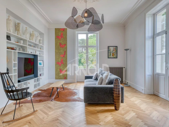 L’élégante bâtisse offre une superficie de 400 m² aux volumes harmonieusement répartis.