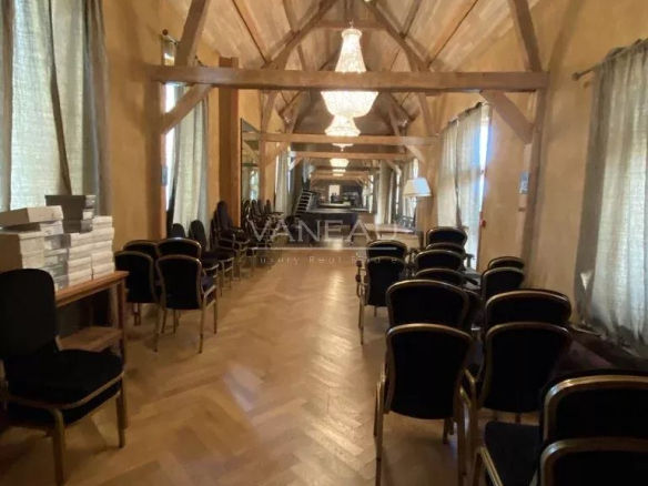 Un hall d’entrée ouvrant sur le rez-de-chaussée d’une surface totale de 190 m² accueillant deux salles de restaurants (dont la « salle Henri IV”) et un salon dit « Louis XV ».
