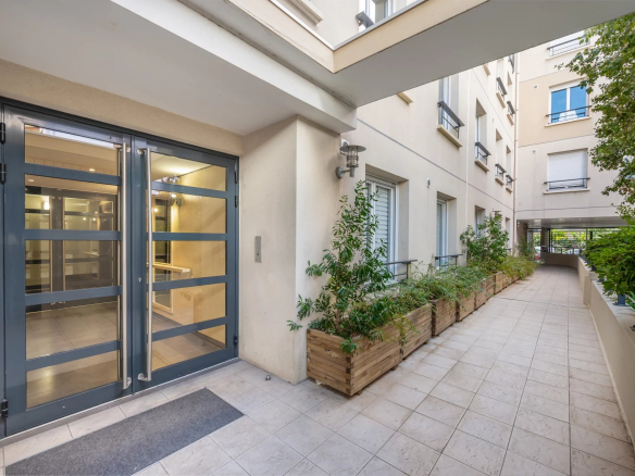 Vous profiterez d’une grande terrasse de 22 m², côté cour, exposée plein sud, offrant une vue dégagée et à l’abri du bruit de la ville.