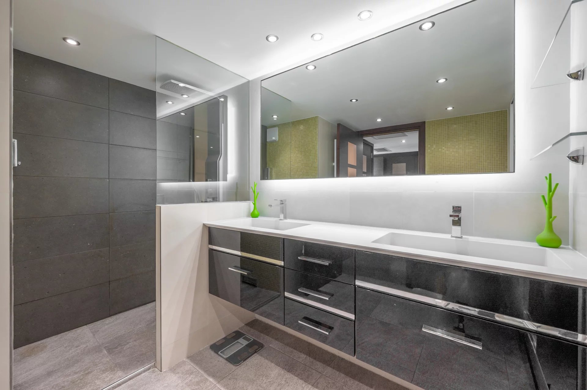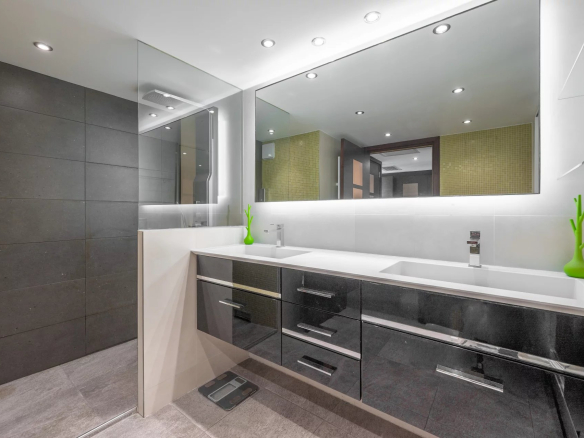 Il se compose d’un grand salon avec salle à manger, d’une élégante cuisine américaine, d’une chambre de maître avec son dressing (ou d’une seconde chambre), ainsi que d’une spacieuse salle d’eau de 7 m² avec double vasque, douche italienne et bidet, ainsi qu’un WC indépendant.
