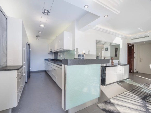 L’appartement, traversant et très lumineux, séduit par la qualité de ses matériaux et équipements haut de gamme, ses nombreux rangements et son grand dressing. Il est vendu entièrement meublé, avec des prestations d’exception, notamment une cuisine équipée avec plan de travail en granit noir.