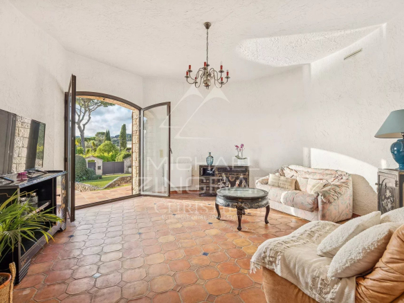 Idéalement située au sein du très recherché Domaine de Pimeau à Antibes Juan-les-Pins, cette élégante villa provençale en pierres naturelles bénéficie d’un environnement résidentiel d’exception, alliant calme, discrétion et proximité immédiate des plages et des adresses emblématiques de la Côte d’Azur.