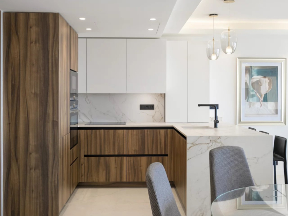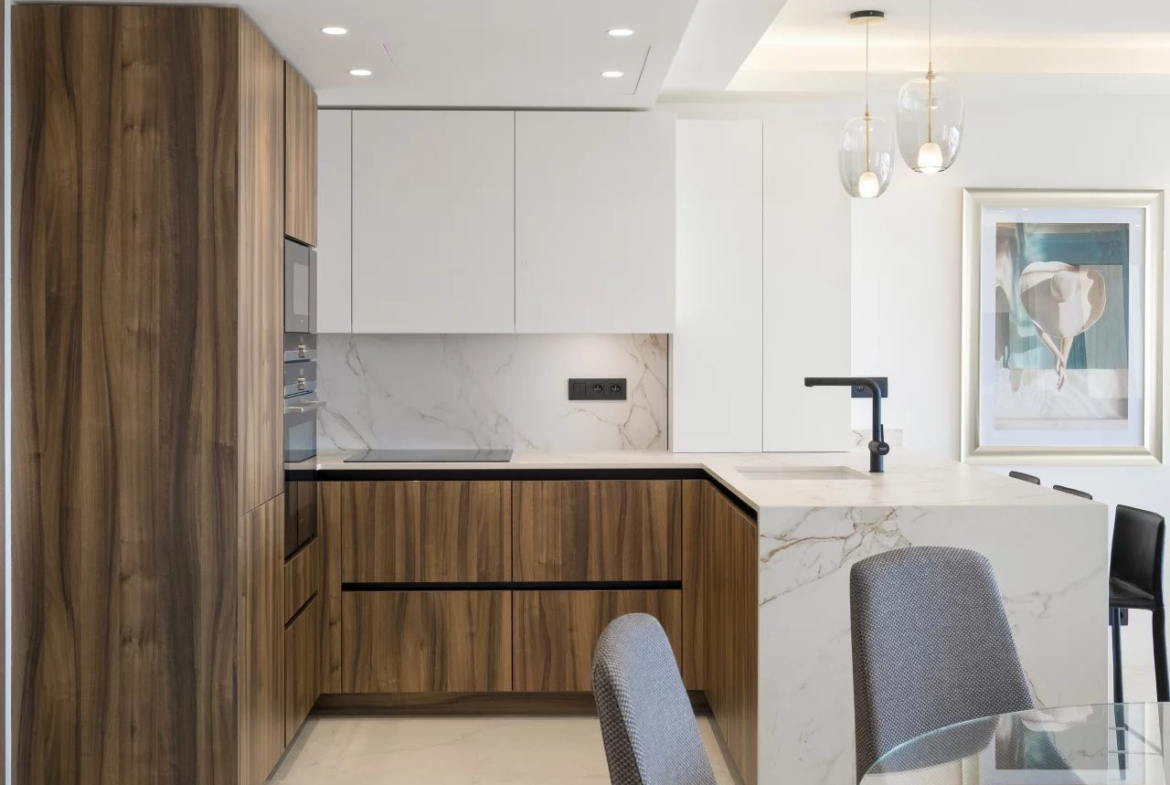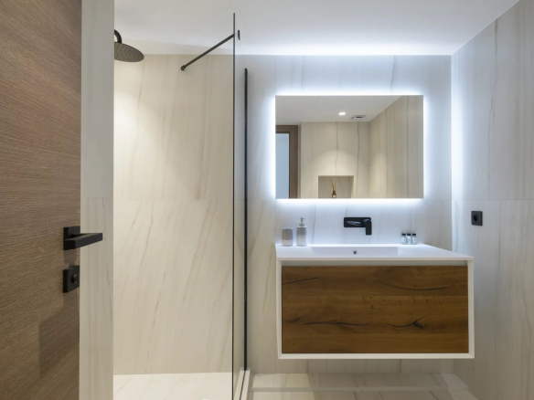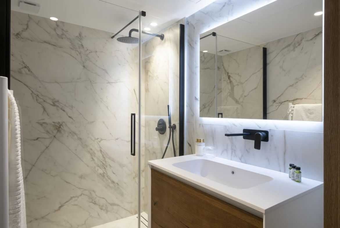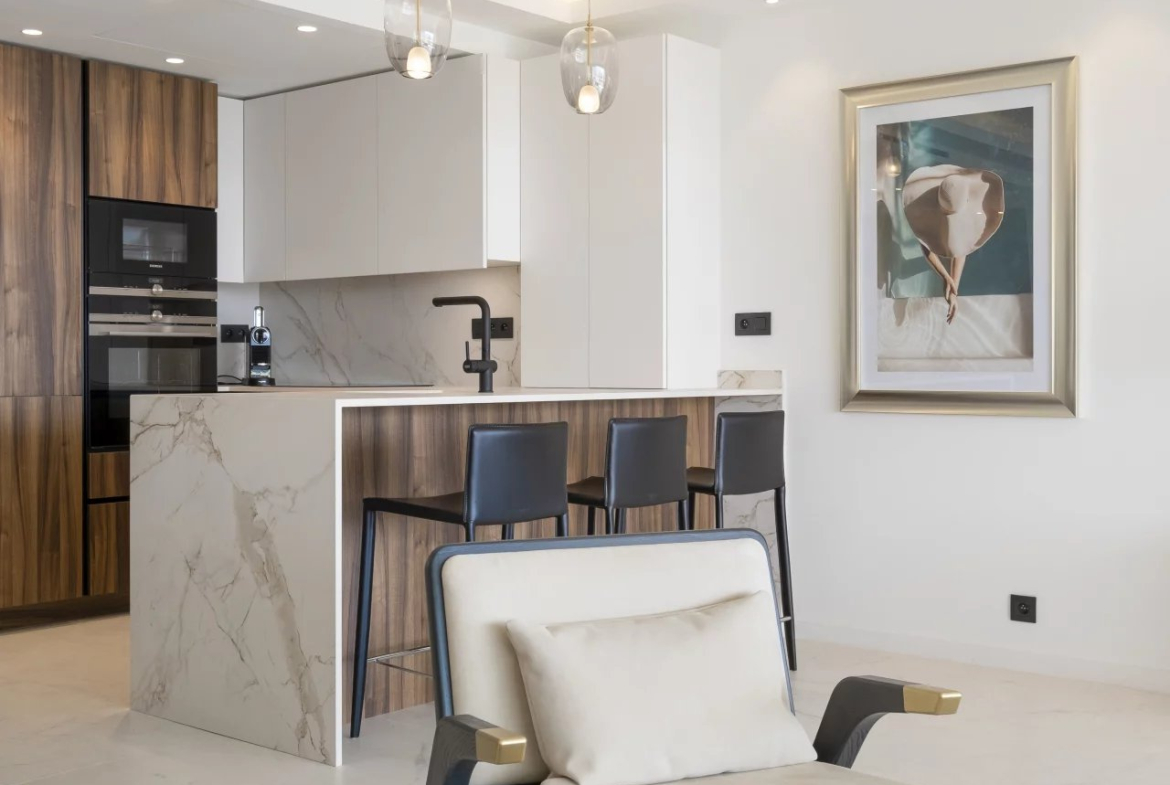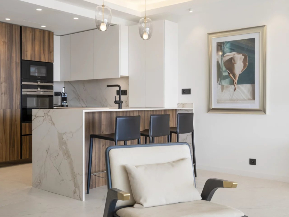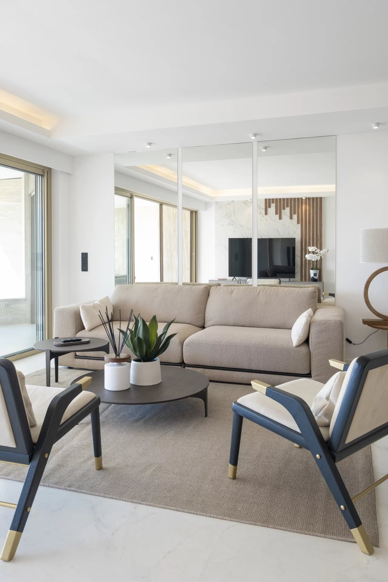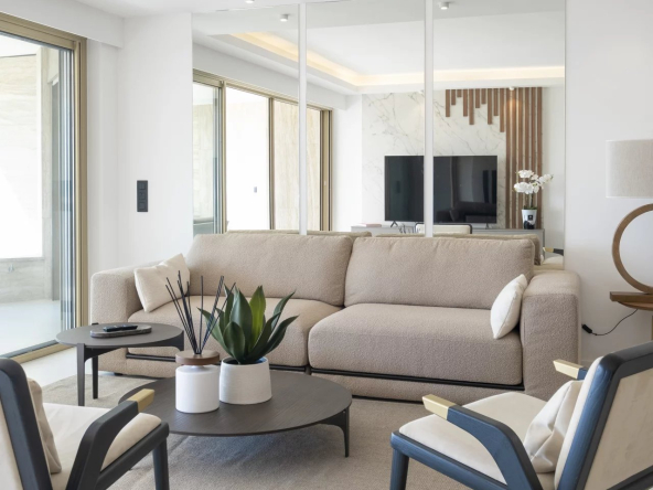 L’appartement se compose d’un vaste séjour lumineux avec cuisine ouverte, de trois chambres en suite, et d’une terrasse de 26 m², idéale pour profiter de la vue et de l’ensoleillement.