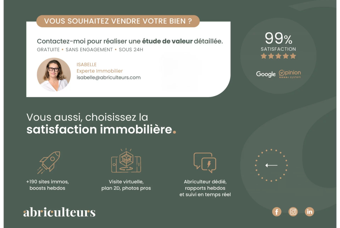 Annonce rédigée sous la responsabilité éditoriale de Mme Isabelle BRUT-FRANCIS , agent commercial (EI), immatriculé au RSAC de Nanterre sous le n° 903 553 295, sans détention de fonds, agissant pour le compte de la SARL Abriculteurs immobilier, au capital de 5 000 €, immatriculée sous le SIREN n° 837 704 584, titulaire de la carte professionnelle n° CPI 7501 2018 000 025 842 délivrée par la CCI de Paris Île-de-France, dont le représentant légal est M. Adrien Piot, ayant son siège social au 12 rue des Halles, 75001 Paris.