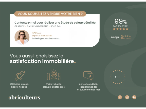 Bienvenue chez Abriculteurs, l’agence familiale qui s’engage à un service immobilier d’exception. Découvrez une présentation soignée de ce bien : des photos professionnelles, un plan détaillé et une visite virtuelle immersive.