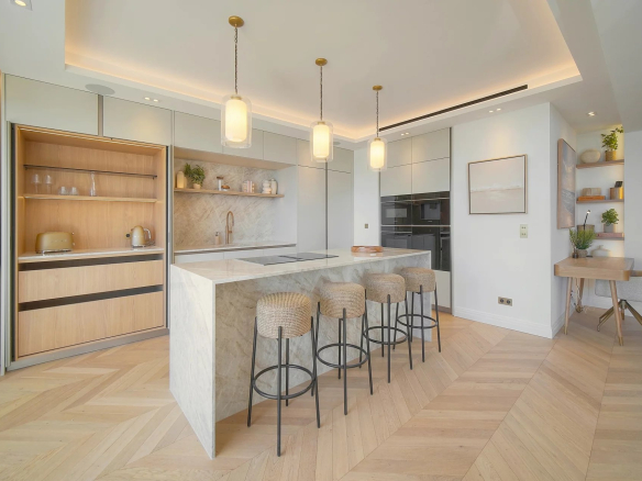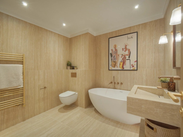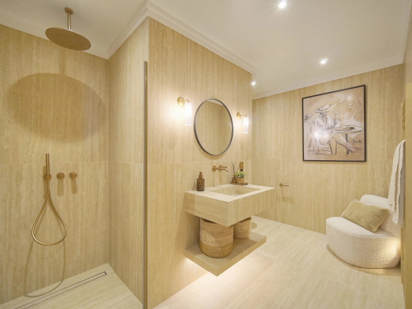 L’appartement dispose également d’une buanderie, d’un hall d’entrée avec espace vestiaire, et bénéficie de prestations modernes et raffinées.