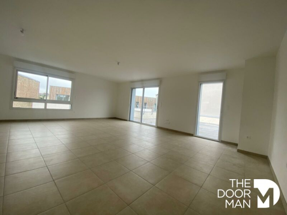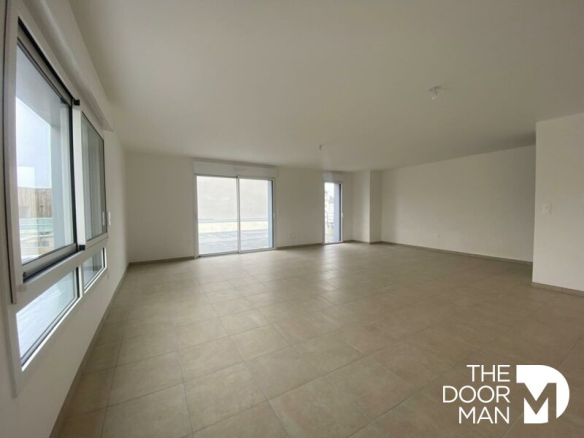 Séjour/cuisine sur terrasse de 68 m², quatre chambres, deux pièces d’eau.