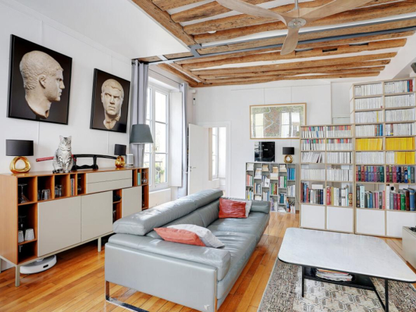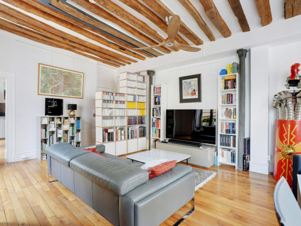Au 1er étage (sans ascenseur) d’une jolie copropriété XVIIIe dont les parties communes sont bien entretenues, un appartement d’angle de 73.83 m² carrez (76.21 m² au sol) composé de :