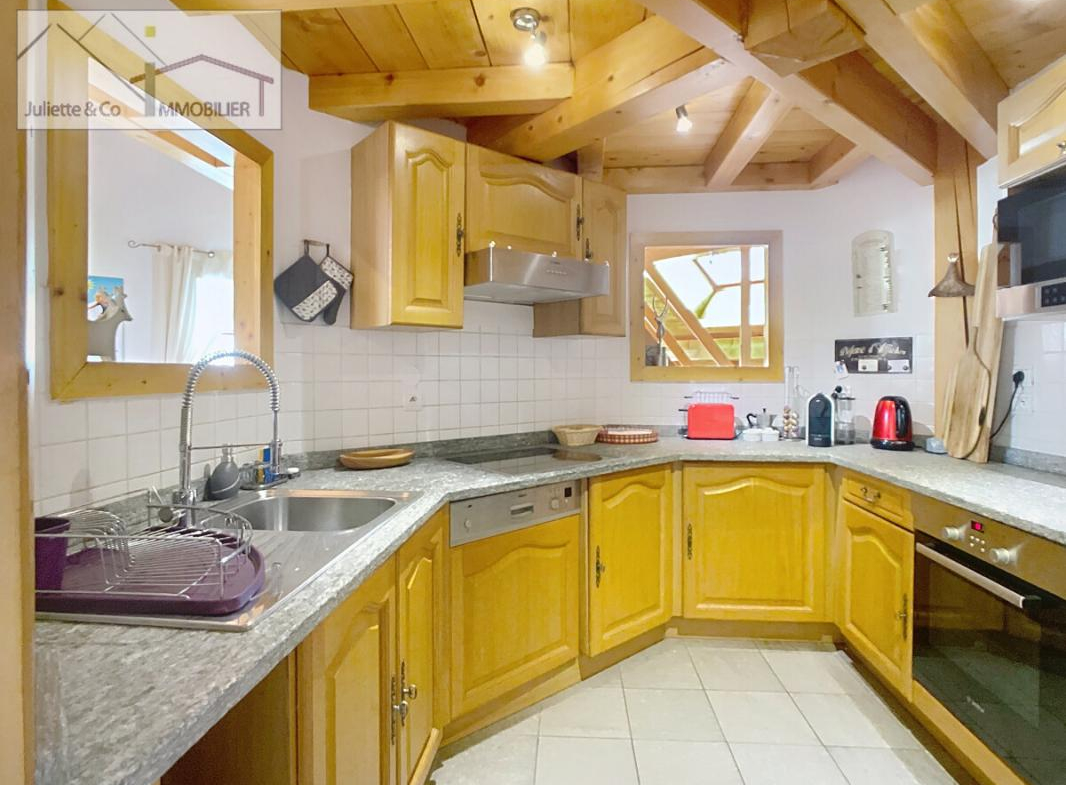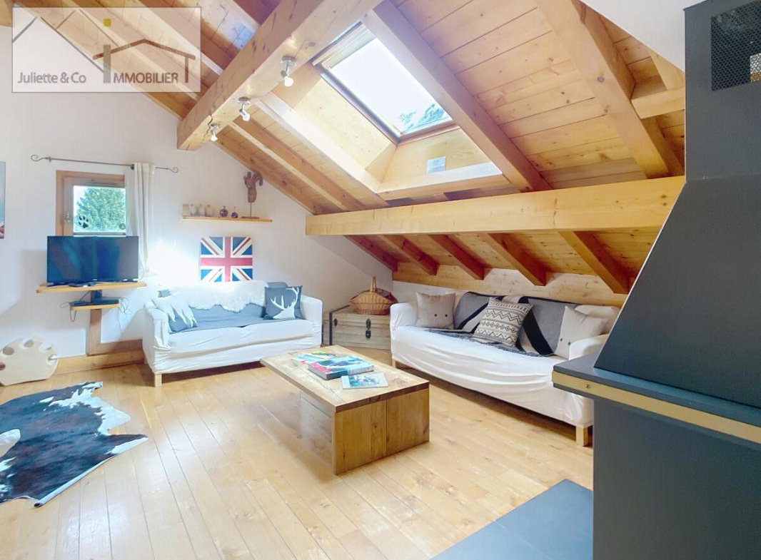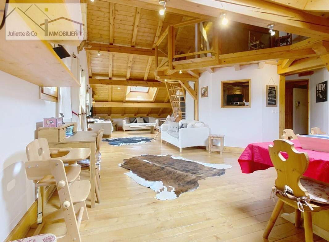Situé dans l’hyper centre de Chamonix, cet appartement spacieux de 124 m² habitables (82.17m² loi carrez). L’appartement est situé au dernier étage d’une résidence, Il est composé de trois chambres lumineuses, chacune dotée de sa propre salle de bain. Une cuisine semi-ouverte, un grand salon qui bénéficie d’une belle hauteur sous plafond et des velux exposé SUD et OUEST, un balcon exposé EST.