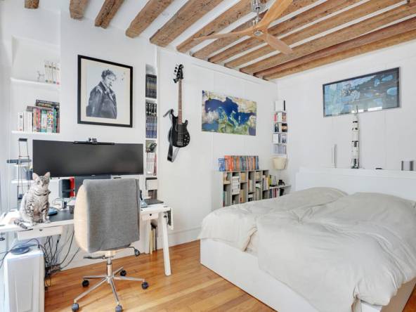 Charme de l’ancien : parquet, poutres apparentes, hauteur sous plafond (2,90 mètres). Très bon état général. Idéal Pied-à-terre.