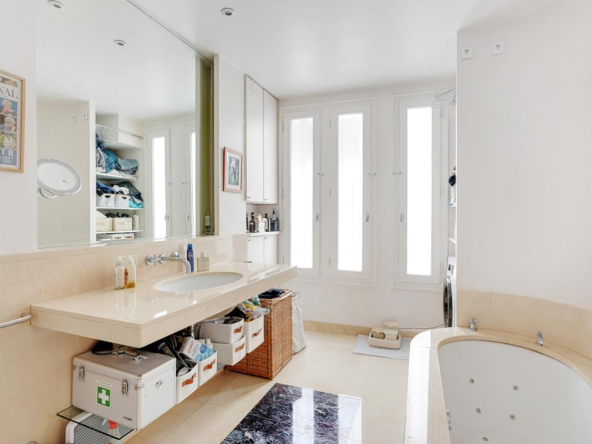 Au 1er étage (sans ascenseur) d’une jolie copropriété XVIIIe dont les parties communes sont bien entretenues, un appartement d’angle de 73.83 m² carrez (76.21m² au sol) composé de :
