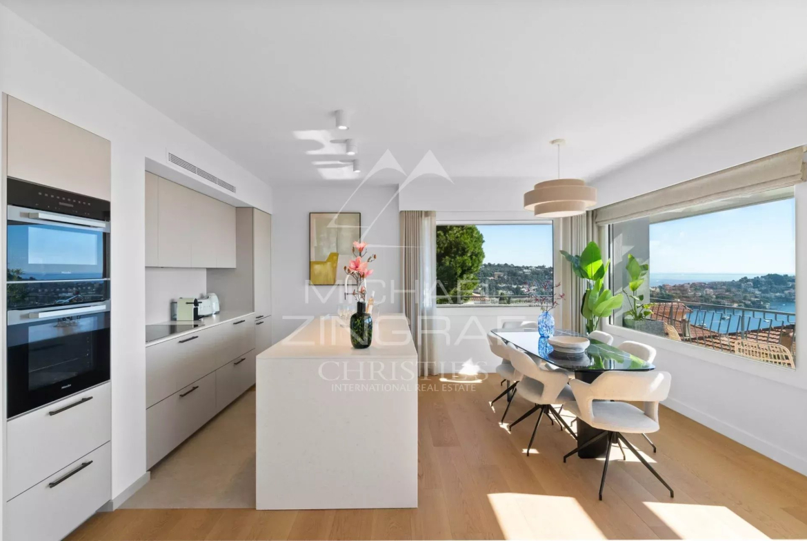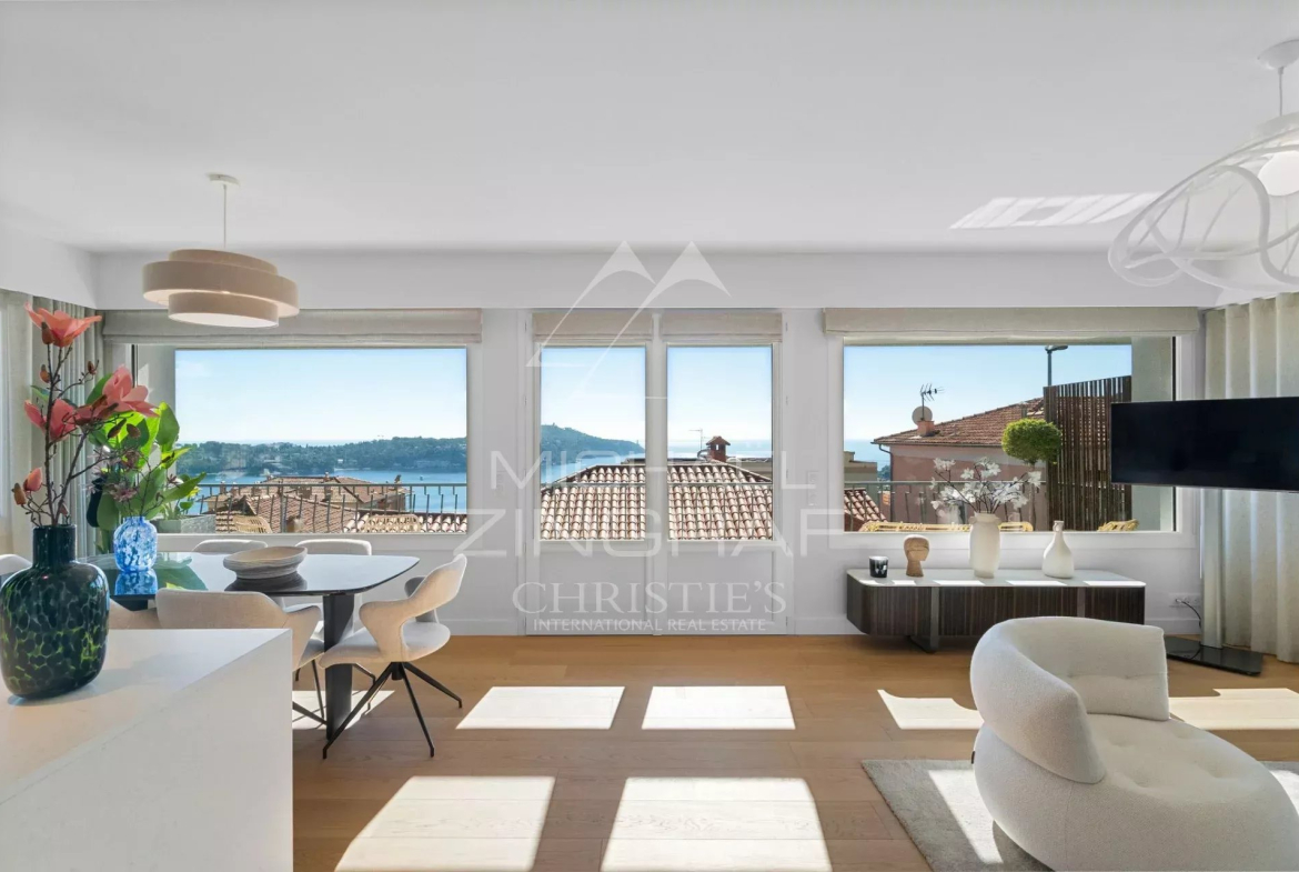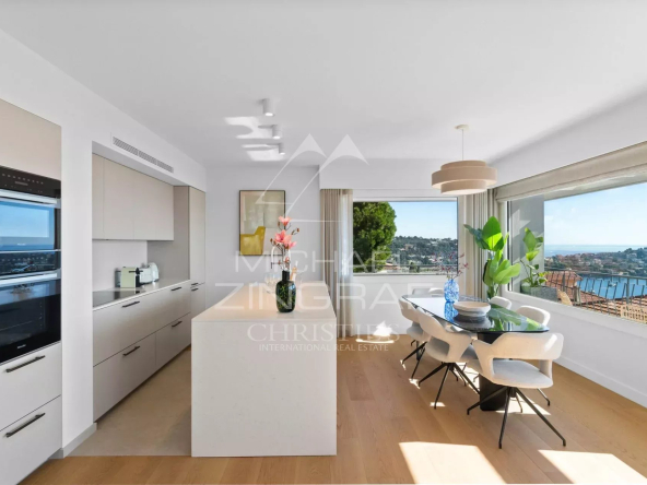 Les extérieurs, véritables atouts de cette propriété, se composent d’une terrasse de 35 m² ainsi que d’un toit-terrasse privatif de 100 m², idéal pour recevoir ou se détendre face à l’un des panoramas les plus spectaculaires de la Côte d’Azur. L’exposition sud / sud-est assure un ensoleillement généreux tout au long de la journée et une vue imprenable sur la mer et la rade.