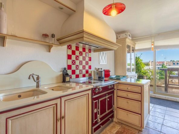 La cuisine totalement équipée et fonctionnelle est également ouverte sur la terrasse.