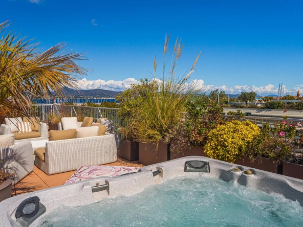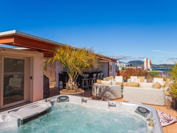 Si vous recherchez un point d’attache de qualité dans le fameux village de Saint Tropez… Ne cherchez plus !!! Nous avons dénicher pour vous un magnifique appartement en duplex de 122 M2 avec un toit terrasse de 160 M2 offrant une vue unique et panoramique sur le golfe de Saint Tropez et son port emblématique.