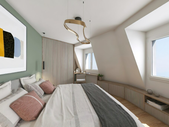 Issu d’un projet de surélévation sur un bâtiment existant de 4 étages, ce logement prend place au 5? et dernier étage, offrant un cadre de vie contemporain et privilégié.