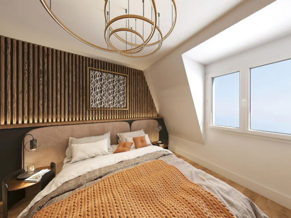 D’une surface de 70 m² au sol, l’appartement se compose d’un séjour spacieux d’environ 30 m², de deux chambres confortables et d’une salle de bain fonctionnelle. Les volumes sont bien équilibrés et conçus pour maximiser le confort au quotidien.