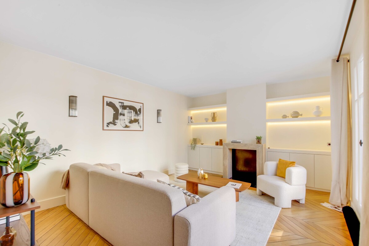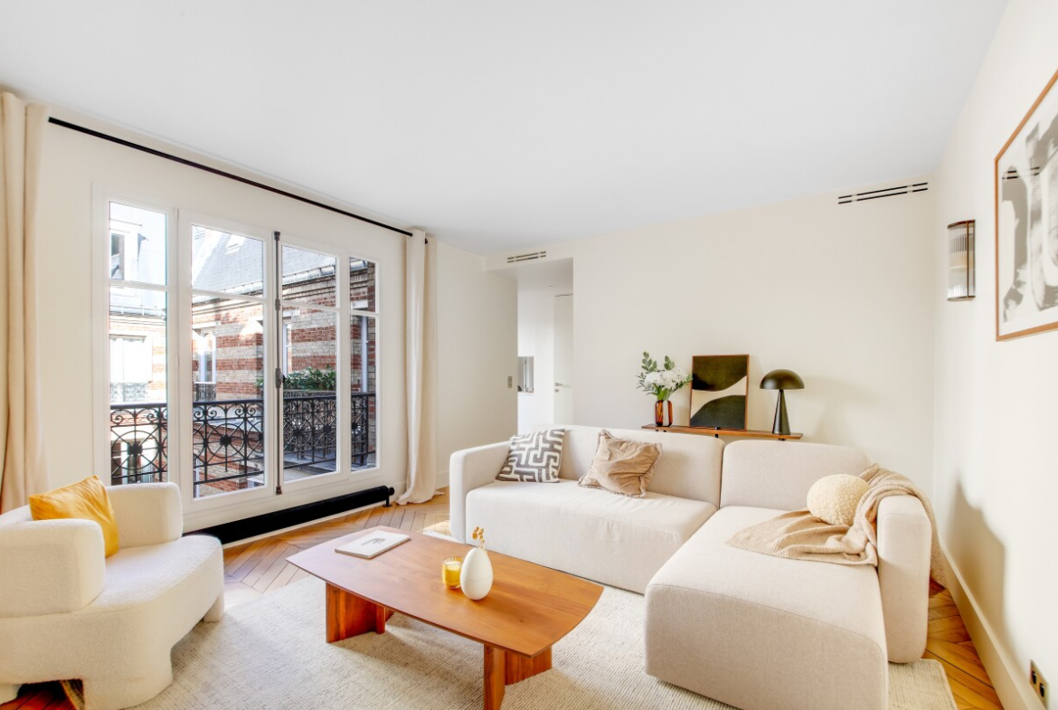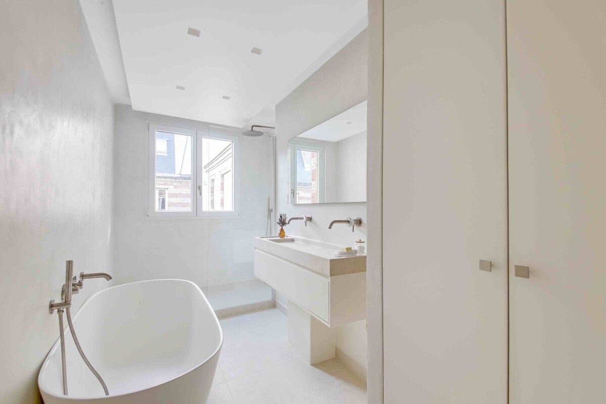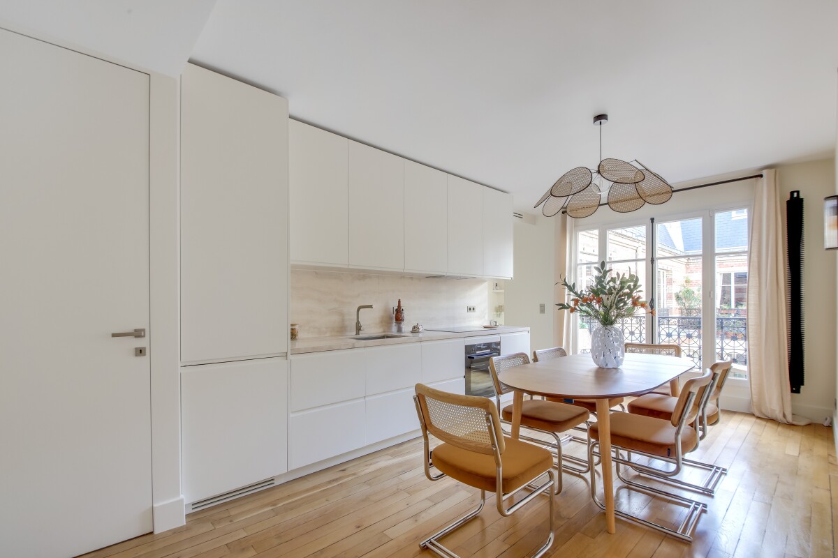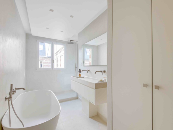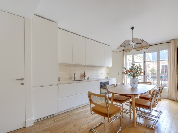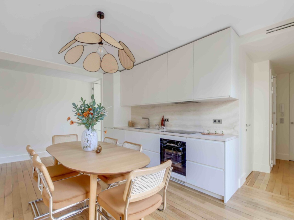 Avenue de Tourville – Seul au 6ème étage d’un immeuble ancien avec ascenseur, appartement refait à neuf composé d’une entrée avec placards, d’un séjour, d’une salle manger avec cuisine ouverte donnant sur un balcon exposé ouest et de toilettes invités. La partie nuit est composée d’une première chambre avec placards, d’une salle de douche, d’une suite parentale avec placards, salle de bains et toilettes séparées. Belle rénovation pour cet appartement neuf, disposant de la climatisation dans chaque pièce. Cave.
