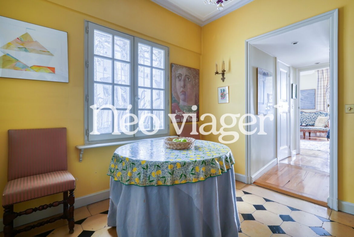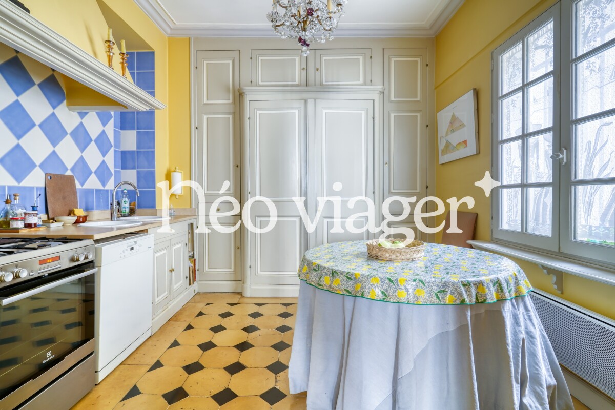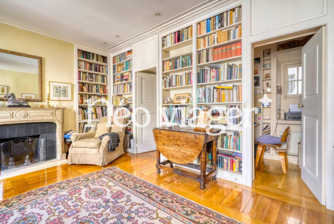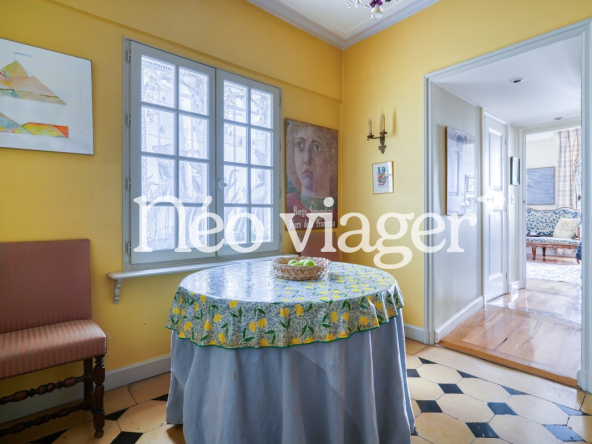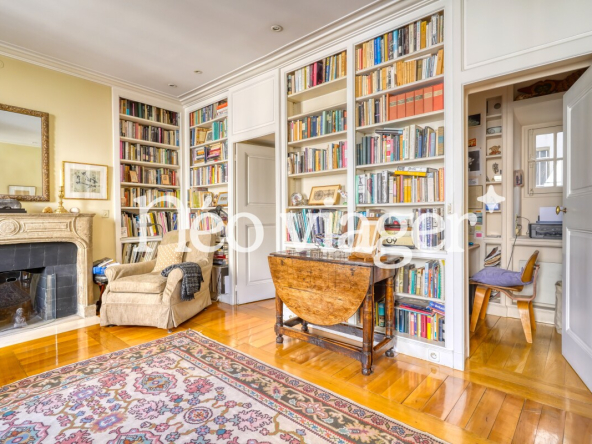 L’appartement se compose d’une entrée, d’une chambre spacieuse avec salle de bain, dressing et cheminée, d’un salon avec cheminée régence, d’une cuisine dinatoire, d’une buanderie et de WC indépendants.