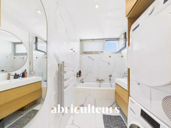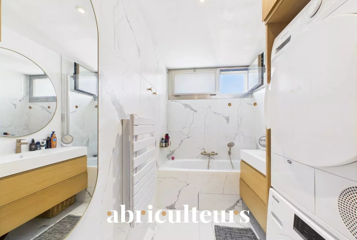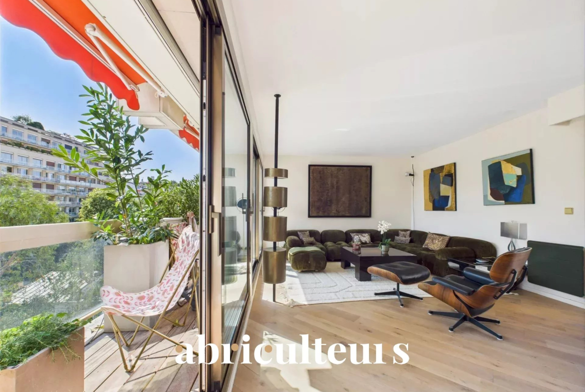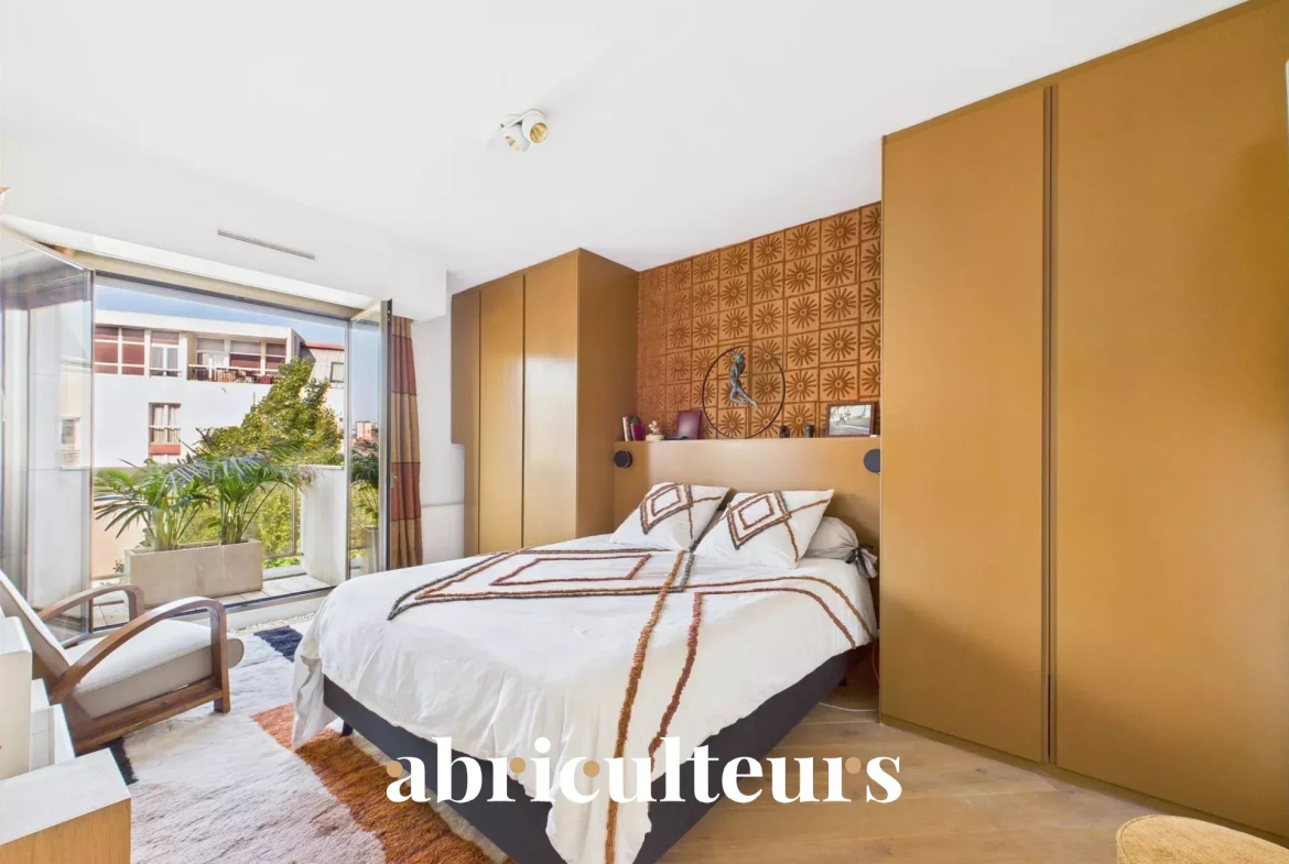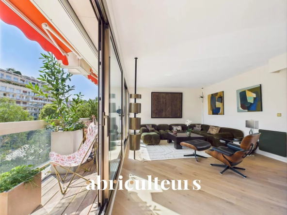 Entièrement repensé et rénové par un décorateur de renom, ce bien clés en main se distingue par son style contemporain, ses matériaux haut de gamme et ses volumes parfaitement agencés. L’appartement s’ouvre de plain-pied sur une sublime terrasse végétalisée de 28,30 m², exposée plein soleil, et offrant une vue panoramique sur les toits de Paris et la verdure environnante, agrémentée d’un éclairage extérieur intégré permettant de prolonger les soirées en toute convivialité. Chaque pièce de vie prolonge cette ouverture sur l’extérieur grâce à de larges baies vitrées donnant également accès à un balcon filant.