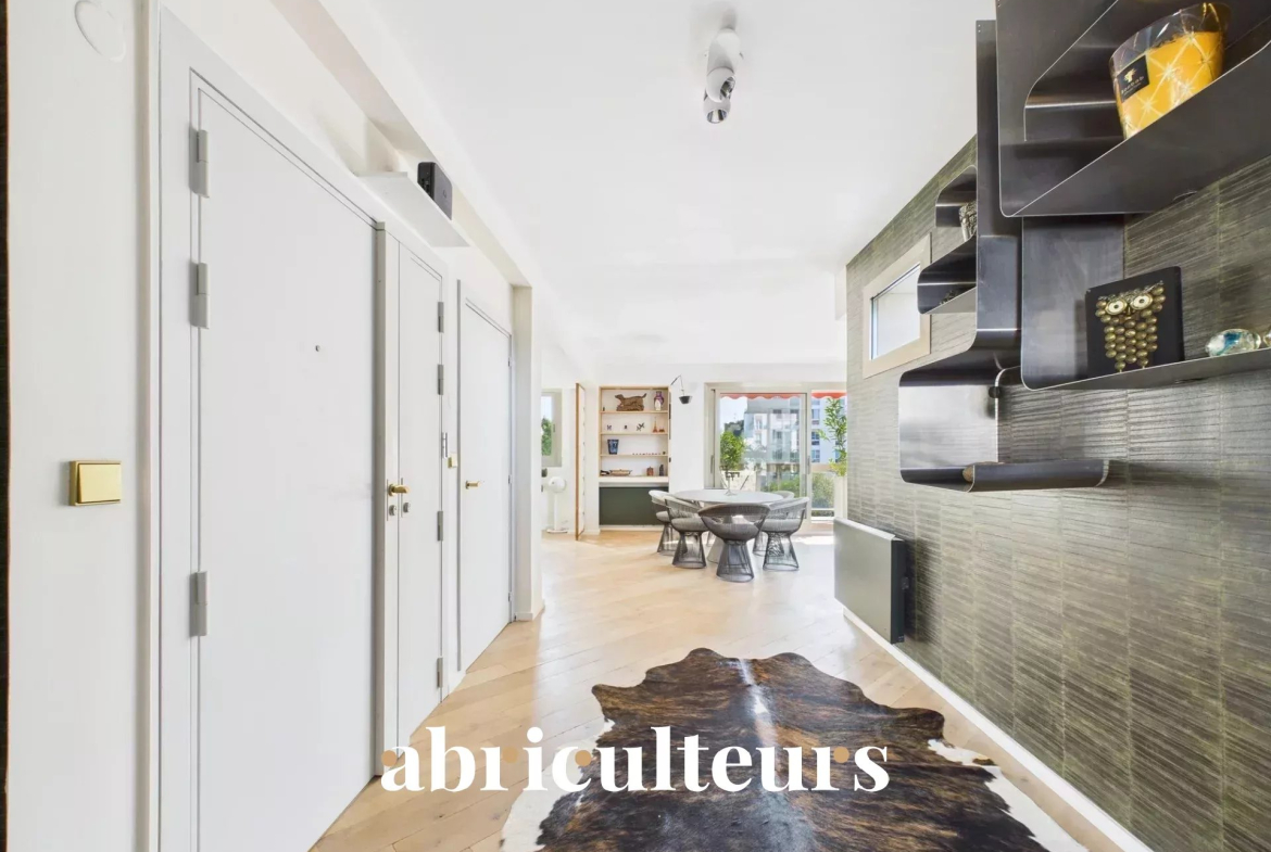 Situé au sixième étage d’une belle copropriété moderne, sécurisée et gardiennée, ce splendide appartement de réception de 147,50 m² loi Carrez se vit comme une véritable maison sur le toit. Seul sur le palier, il offre un cadre de vie rare, intime et baigné de lumière.