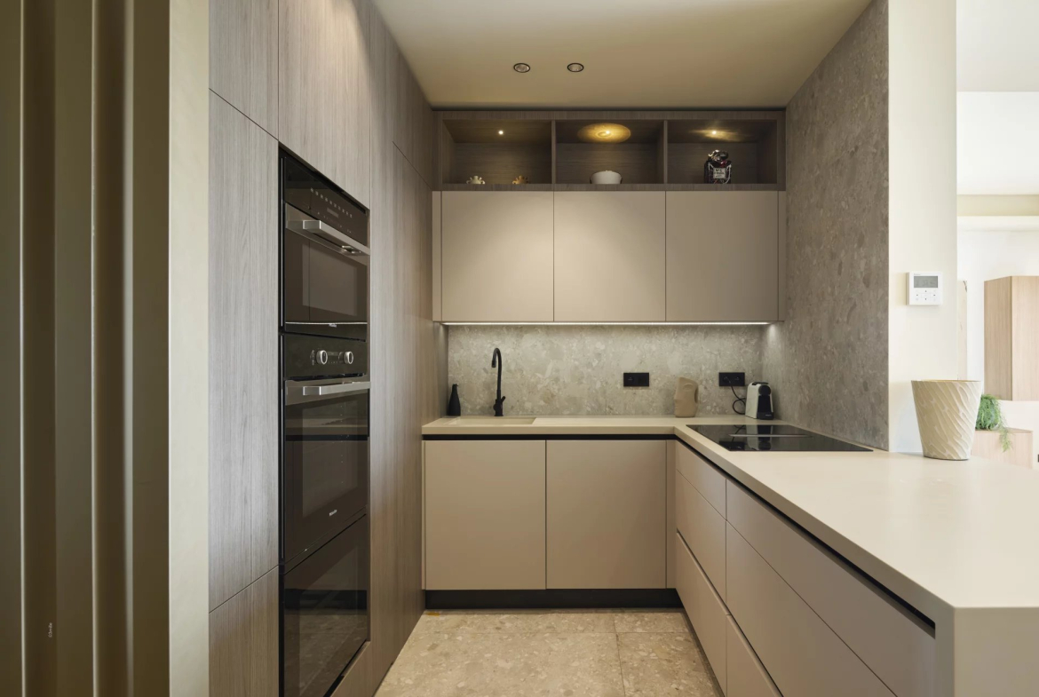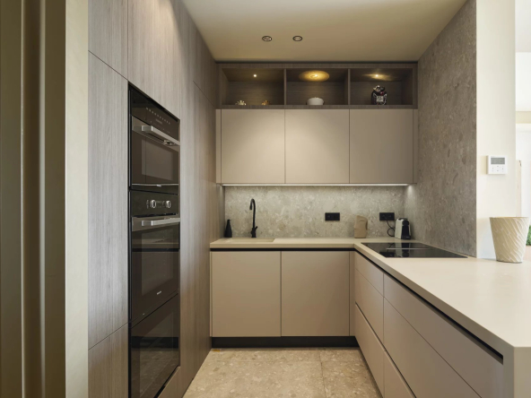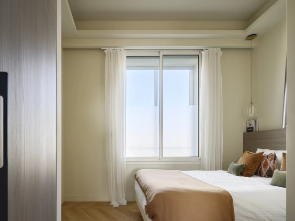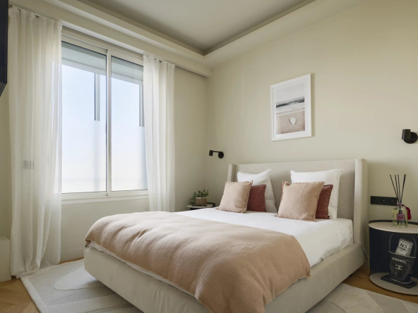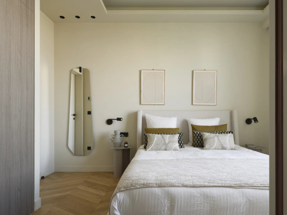 L’appartement dispose de trois chambres en suite, dont une équipée d’un dressing indépendant, garantissant confort et intimité.