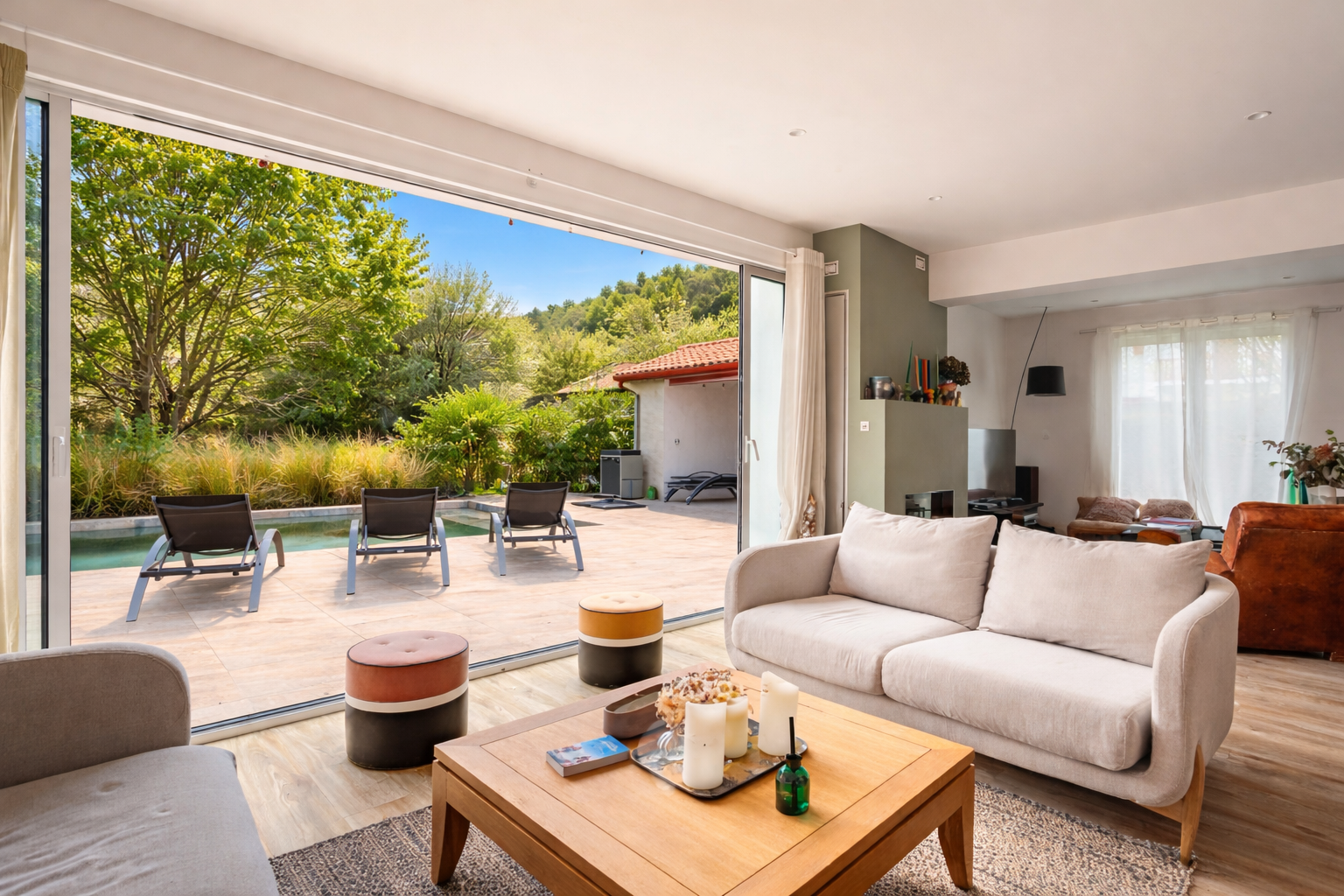 Un coup de coeur immédiat :Une spectaculaire pièce de vie de 75 m2, baignée de lumière, réunissant double salon avec cheminée et cuisine ouverte contemporaine entièrement équipée, prolongée par une terrasse de 115 m2 accueillant une piscine chauffée en pierre de Bali (7 x 4 m), un pool house et une cuisine d’été, pour des moments de convivialité toute l’année.