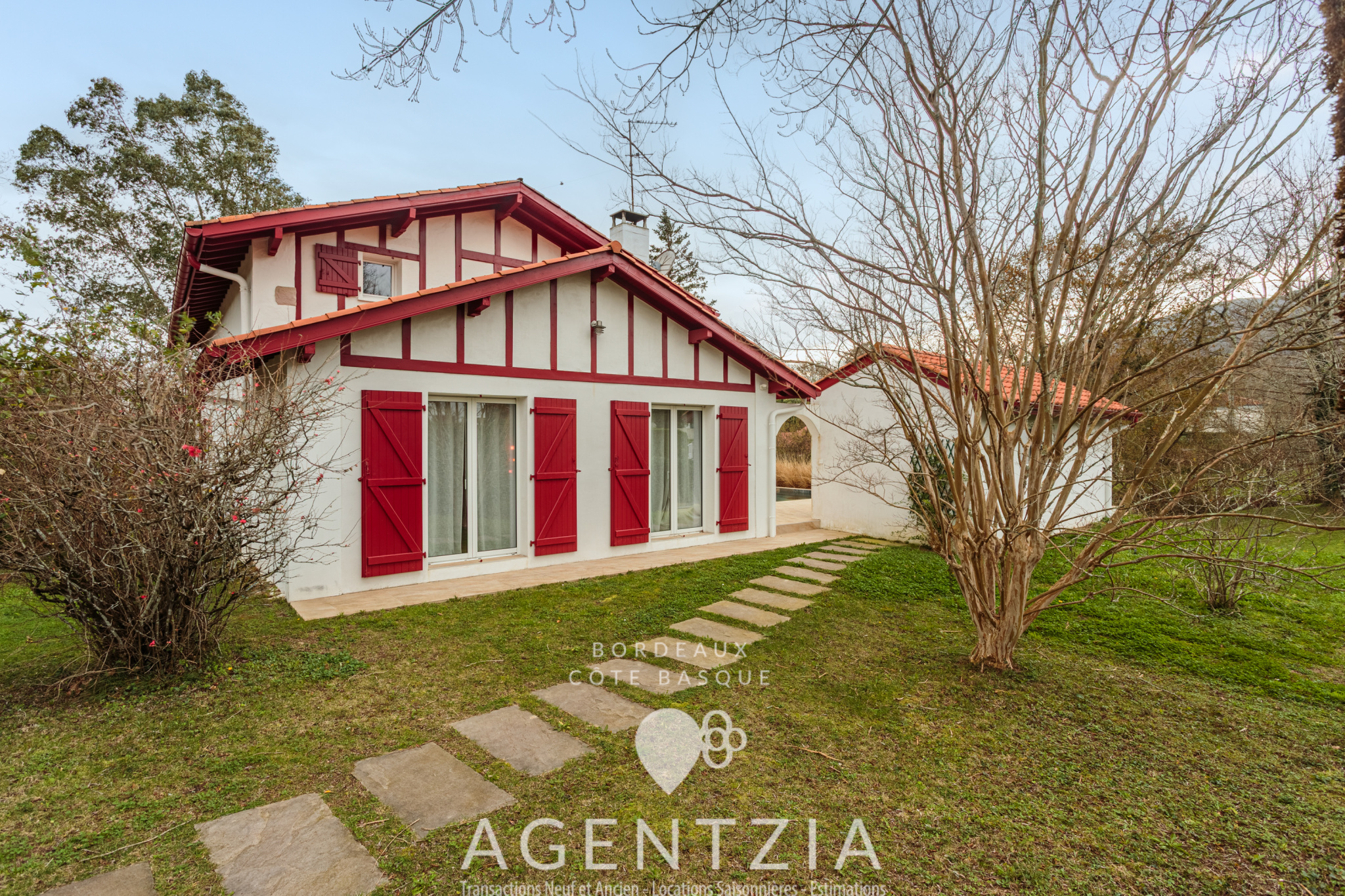 Des extérieurs soignés : Jardin clos, paysagé, arboré et fleuri, exposition plein sud, sans vis-à-vis, avec vue sur la Petite Rhune.