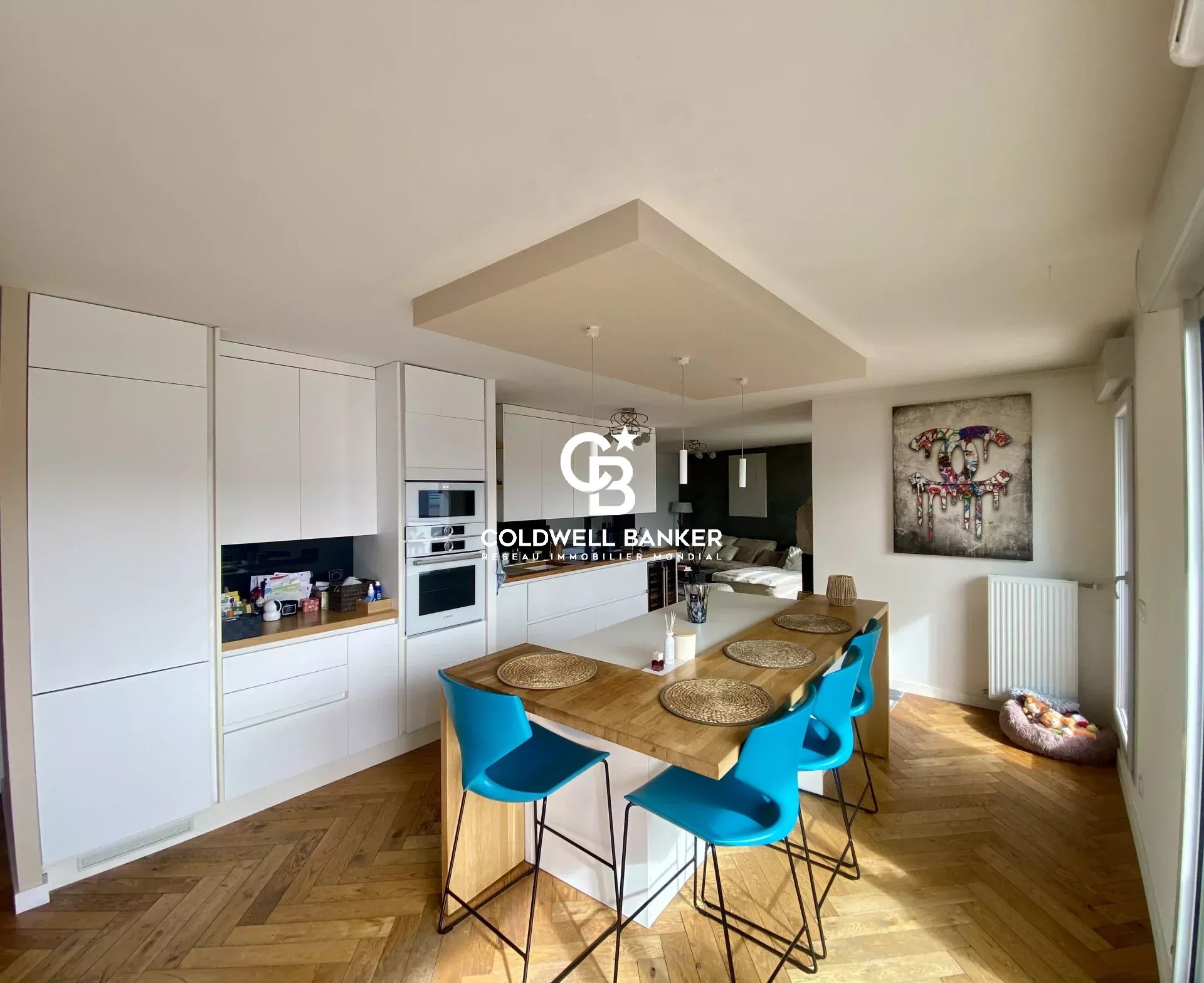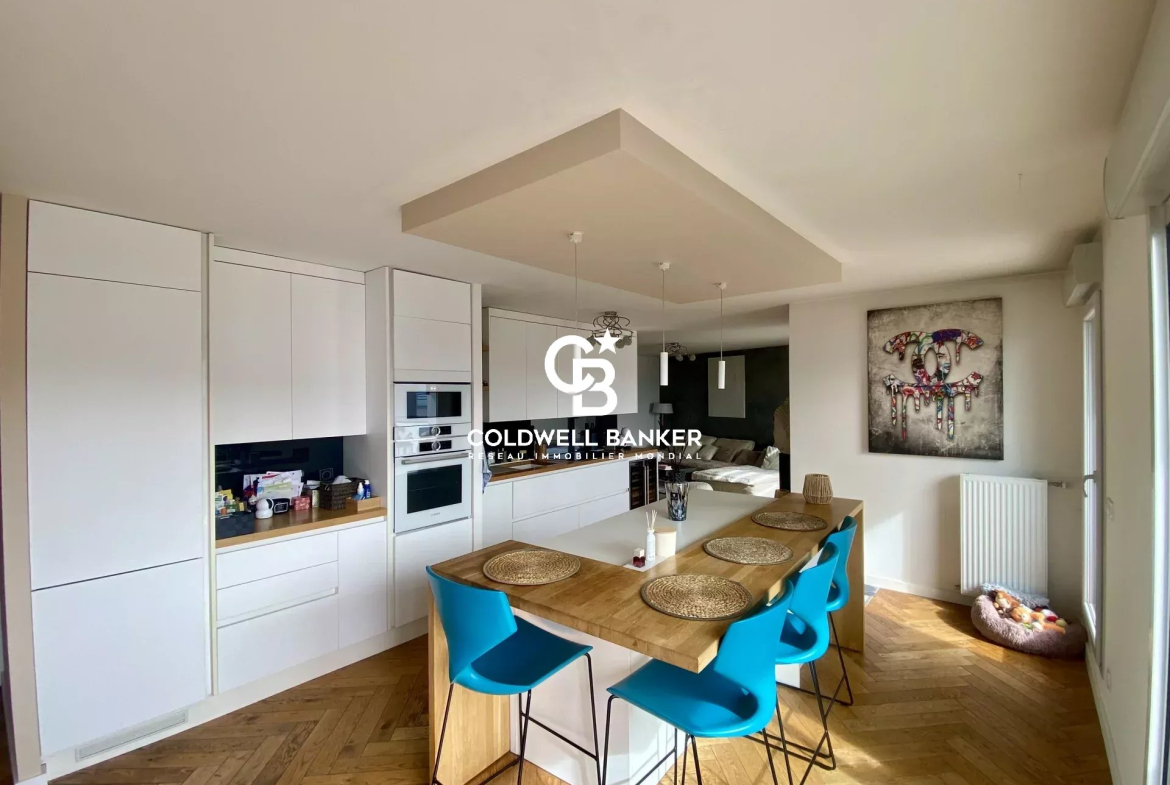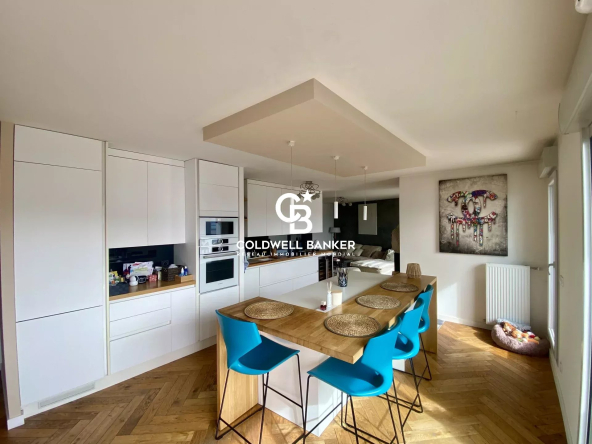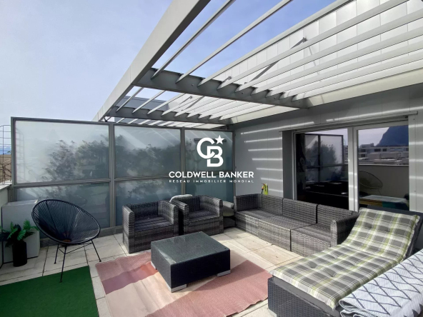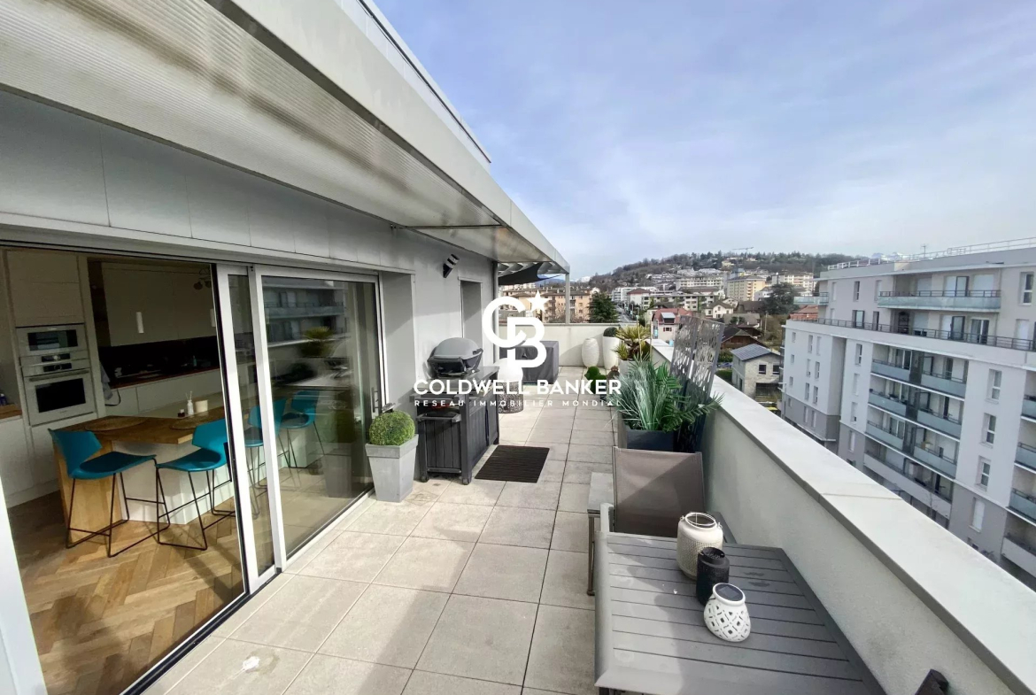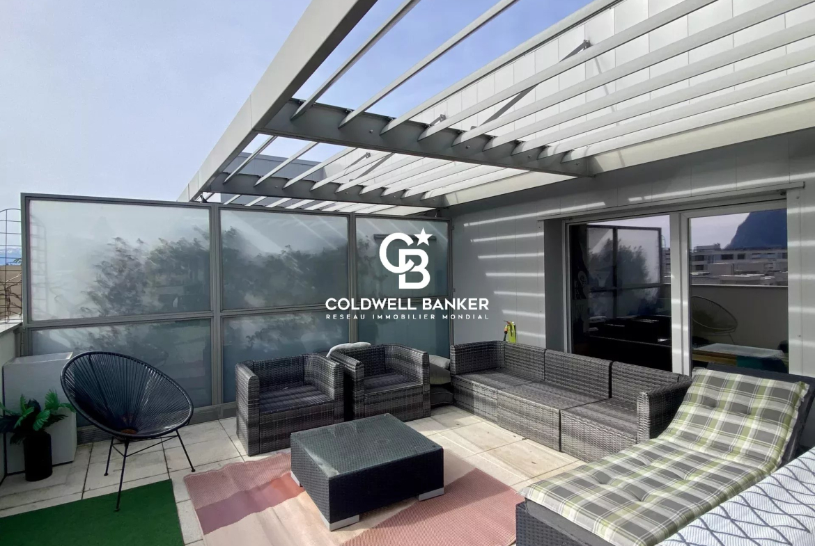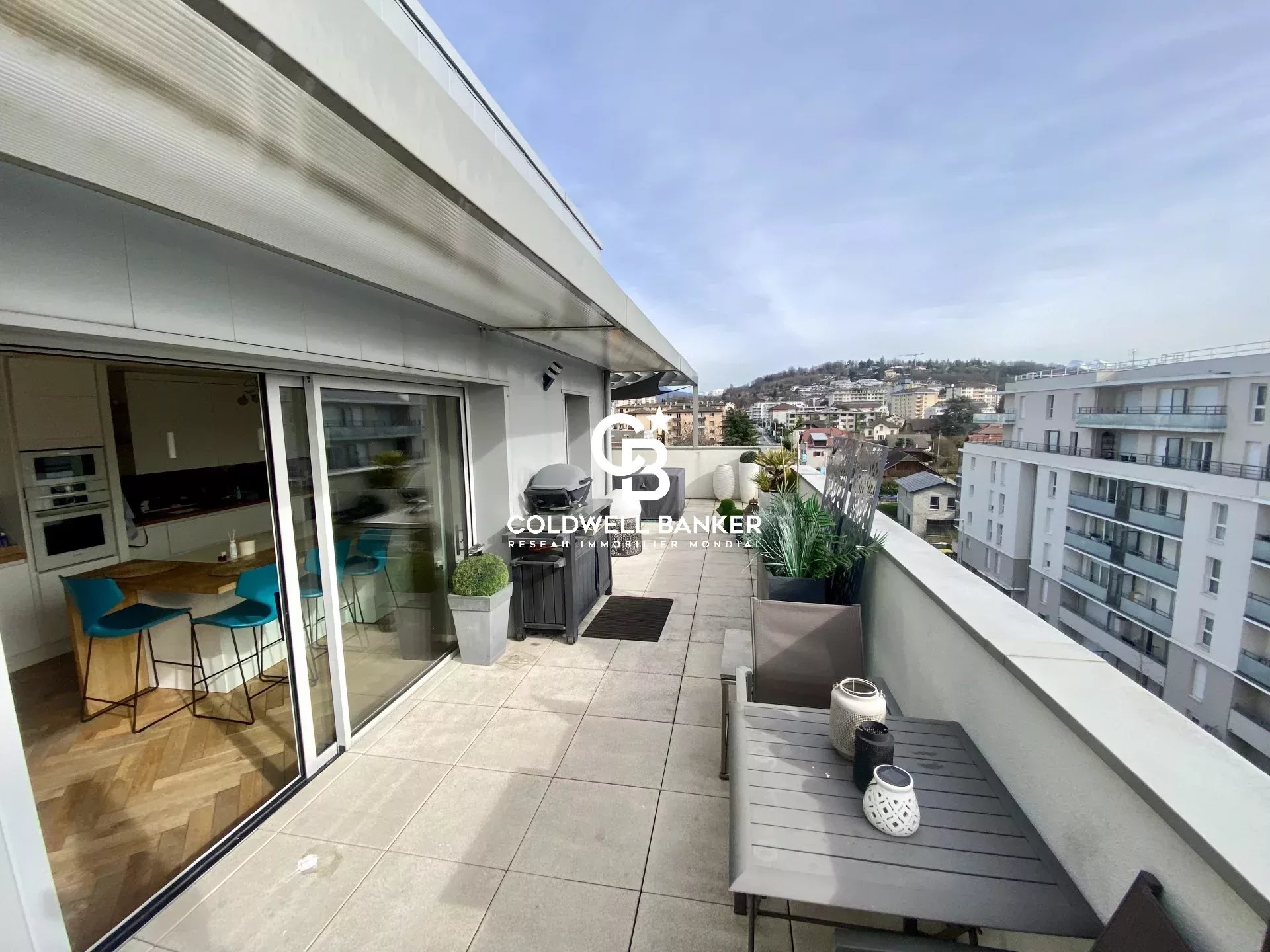 A vendre à Annemasse centre, au dernier étage (attique) d’un immeuble de 2018 nous vous présentons un beau T4 de 145 m2 proposant 3 belles chambres dont une avec une salle de douche et balcon, une autre avec un grand dressing (pouvant être transformé en chambre). Cuisine équipée ouverte spacieuse donnant sur une magnifique terrasse de 51 m2 vue Mont Blanc et Salève (Expo Sud), salon, salle à manger, salle de bains indépendante, buanderie attenante, nombreux placards de rangements et 2 wc.