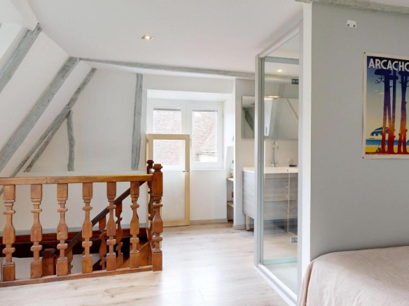 Chaque chambre dispose de sa propre salle d’eau, apportant confort et intimité à chacun. Deux escaliers distincts mènent à des espaces nuit indépendants, parfaits pour accueillir famille ou invités.