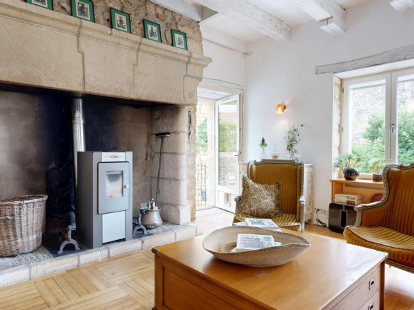 L’ensemble a bénéficié d’une rénovation exigeante, incluant le gros ?uvre, les menuiseries, l’isolation et les équipements techniques. Le confort est au rendez-vous : chauffage central à granulés, poêle à bois, pompe à chaleur réversible? Une performance énergétique remarquable pour une maison ancienne (DPE : classe C).