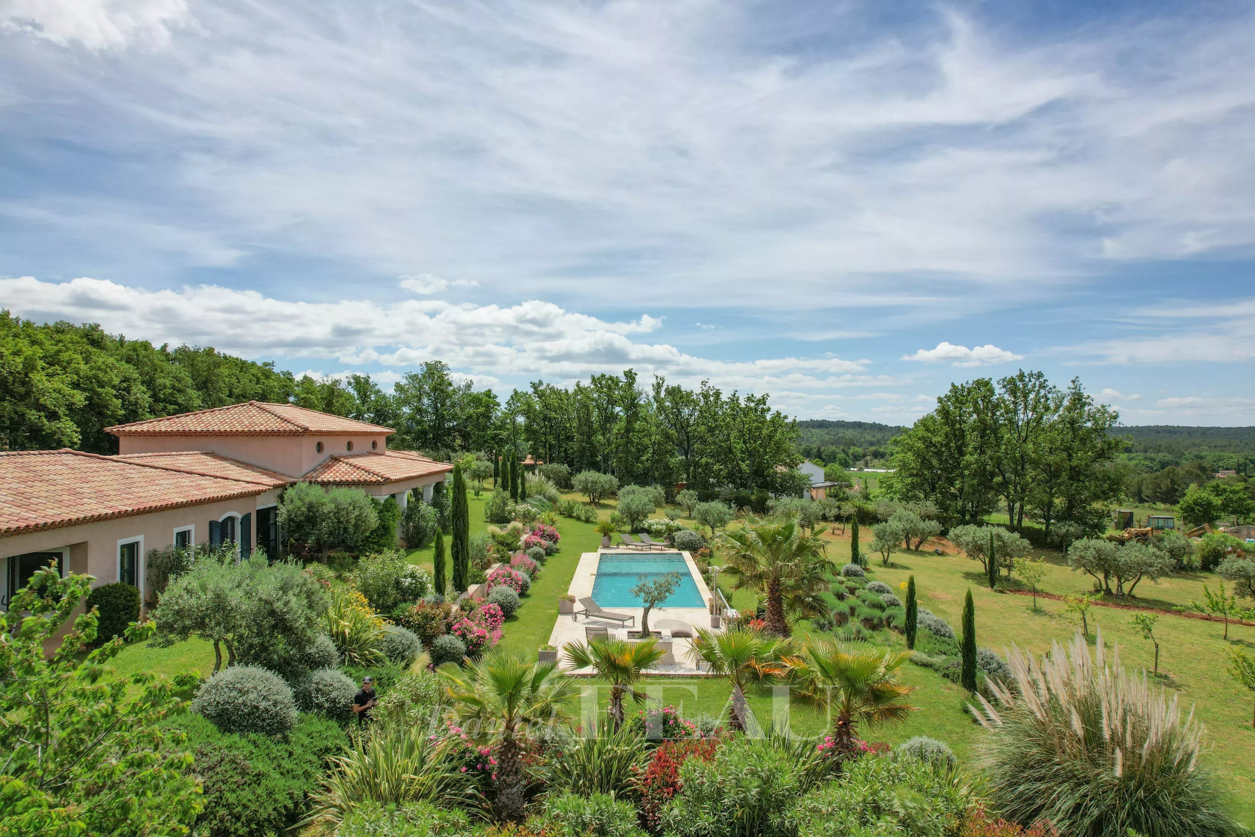 A quelques minutes d’un charmant village avec tous commerces, proche Cotignac, au coeur de la Provence verte, à 1h15 d’Aix en Provence, Saint Tropez et 1h30 de Cannes, au calme absolu, au sein d’un environnement de nature enchanteur, avec vue sur les massifs lointains, les champs et mazets en pierre, propriété familiale récente, alliant style contemporain, charme & authenticité.