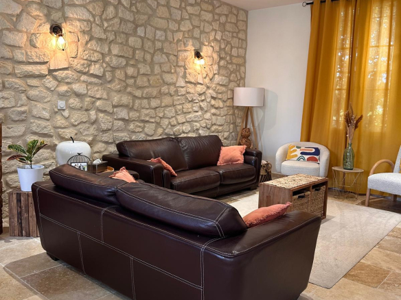 Découvrez ce magnifique mas de caractère entièrement rénové, développant 192 m2 habitables. Il propose un superbe espace de vie de 89 m2 avec cuisine dinatoire ouverte et salon lumineux, complété par une buanderie et wc invités. À l’étage : 3 chambres dont une suite parentale avec salle d’eau, wc et dressing, une salle de bains complète pour les deux autres chambres, wc séparés et espace dressing/bureau.