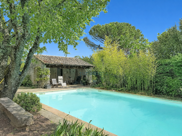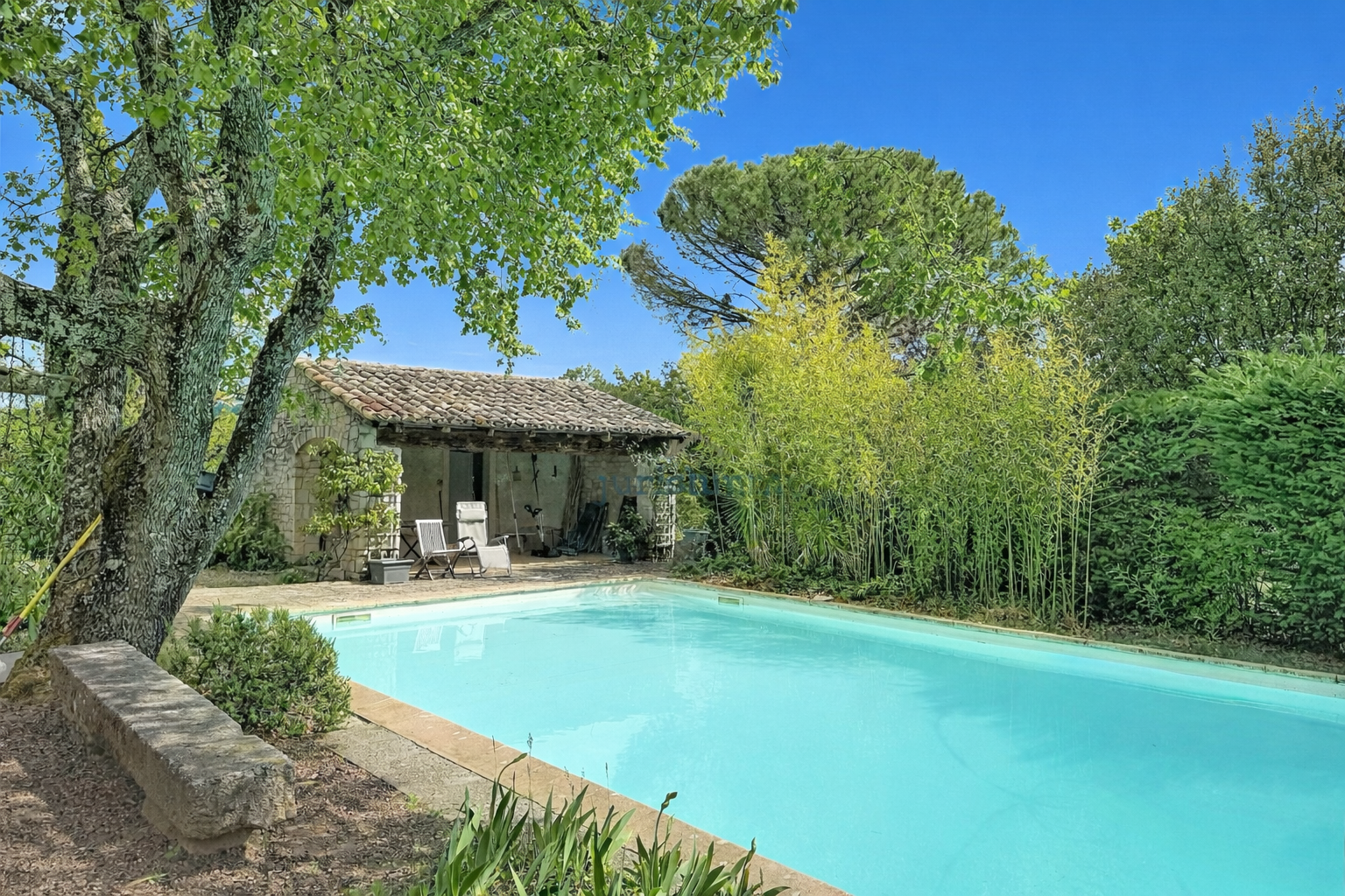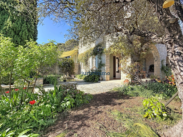 À l’extérieur, le jardin, riche de sa végétation méditerranéenne, s’organise autour d’une piscine aux belles dimensions de 12 x 6 mètres, accompagnée de son espace pool house. L’ensemble s’intègre naturellement dans l’environnement et offre différents espaces pour profiter pleinement du cadre et de la douceur du lieu.