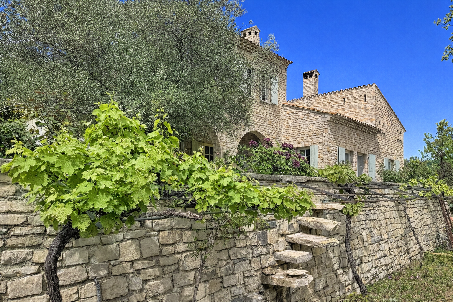 À quelques minutes de Vaison-la-Romaine, au coeur d’un environnement naturel typiquement provençal entouré de vignes, cette propriété en pierre séduit par son caractère, la générosité de ses volumes, la qualité de ses matériaux et son environnement, bénéficiant d’une vue dégagée sur la campagne environnante et le Mont Ventoux.