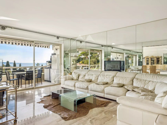 Spacieux et lumineux 5 pièces de 134,39 m2 situé dans une copropriété de standing à quelques pas de la mer et des plages. Cet appartement traversant Est-Ouest bénéficie de deux terrasses offrant des vues extraordinaires sur la baie de Cannes et ses alentours. Il comprend un hall d’entrée donnant accès au double séjour, une chambre parentale avec salle de bain et dressing, 2 chambres avec chacune leur salle de bain, 1 cuisine indépendante entièrement équipée, une buanderie ainsi qu’un wc invité. L’appartement détient un potentiel exceptionnel, pour compléter cette offre, deux garages fermés ainsi que deux caves sont inclus dans le prix de vente. A voir absolument