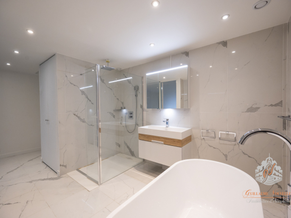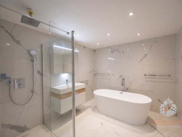 Cet appartement (doté d’une belle hauteur sous plafond de 5 m) est composé, depuis une majestueuse entrée, d’un double séjour spacieux, de trois chambres agréables avec leur salle de bains/eau privative (et WC), d’un espace de bureau ou de chambre d’amis, de deux cuisines équipées et de deux espaces buanderie et des espaces de stockage ou cave à vin. Une quatrième chambre est tout à fait envisageable.