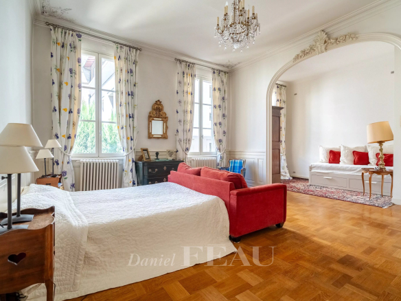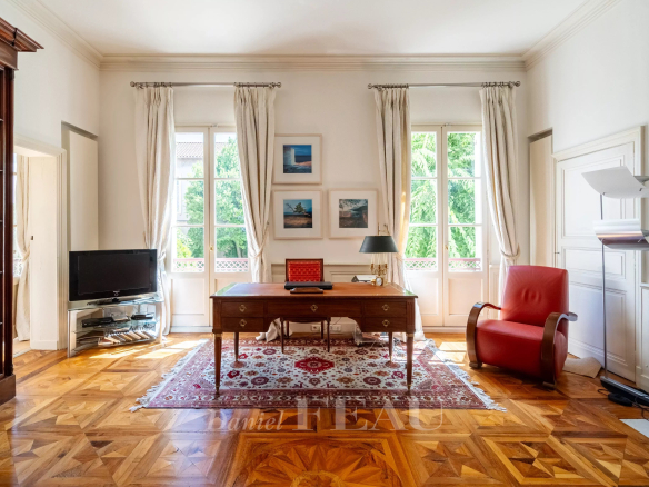 Déployant près de 480 m² habitables, il séduit par ses volumes généreux, son cachet préservé et son jardin arboré, véritable havre de paix en ville, avec la possibilité d’y aménager une piscine.
