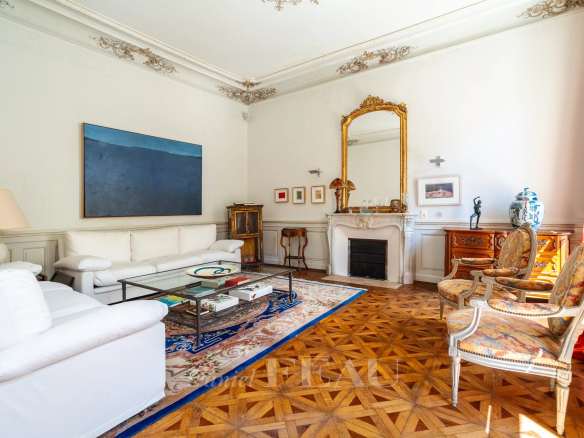 Le deuxième étage, aujourd’hui indépendant, abrite un appartement de caractère. Il comprend un grand salon avec cheminée, une cuisine, une salle à manger et cinq chambres disposant chacune de leur salle de bains. Des travaux de rafraîchissement permettront de valoriser pleinement ce niveau.