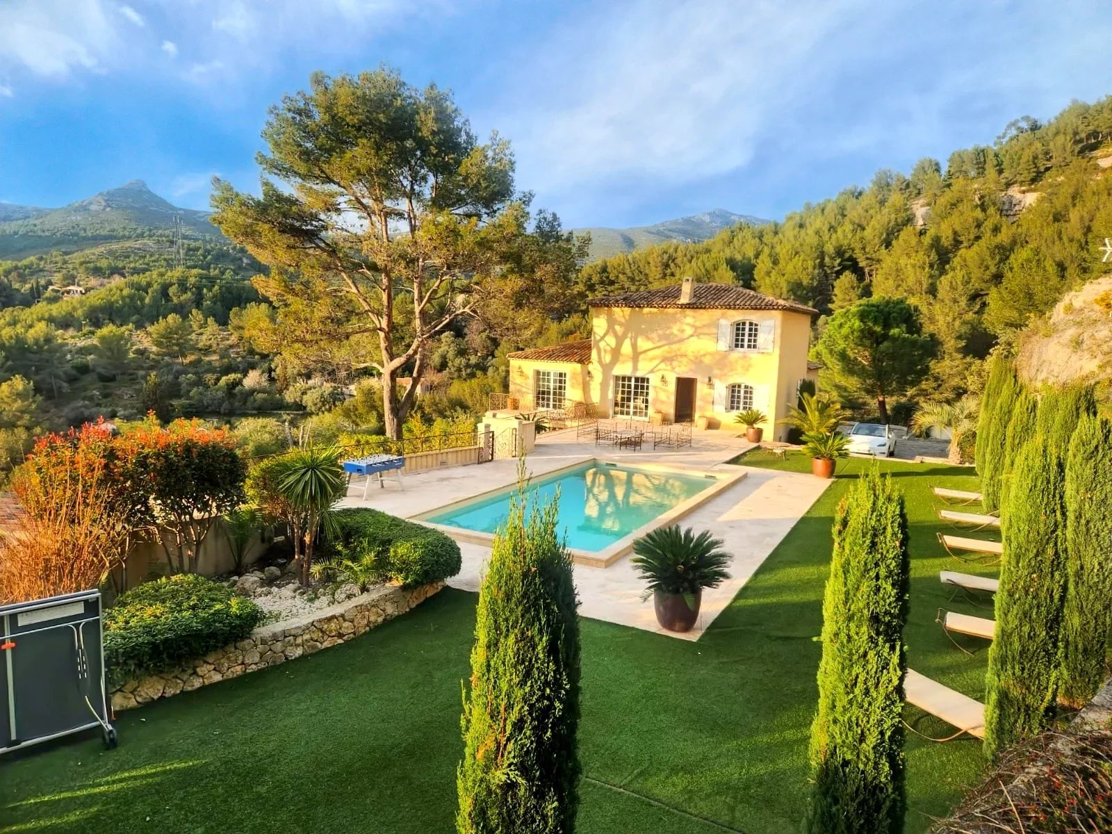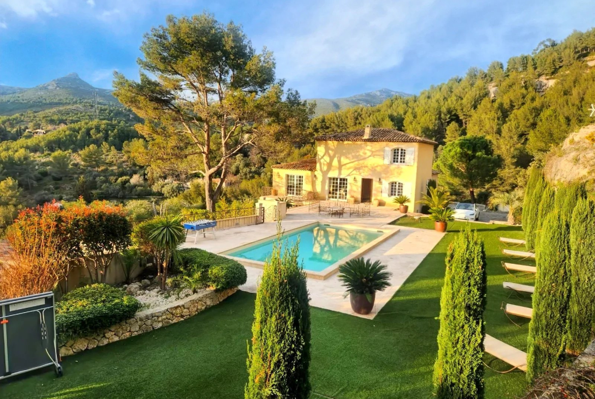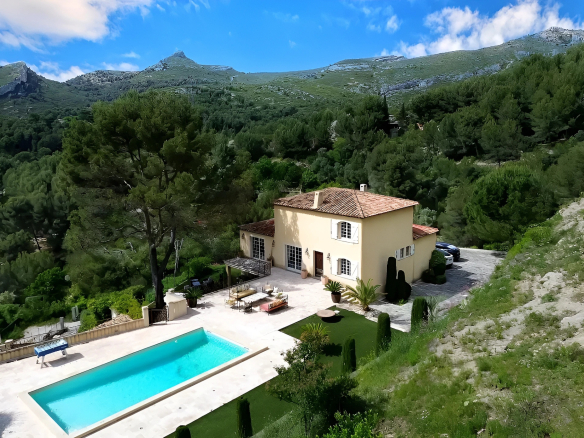 A quelques minutes seulement de Marseille, d’Aubagne, de Cassis et de la Ciotat, cette propriété vous offre un emplacement géographique intéressant. – Au rez-de-chaussée : hall d’entrée, un séjour avec cheminée, deux chambres, deux salles de bain, un wc invité. – A l’étage : chambre parentale avec jacuzzi, salle de bain avec douche et wc – Au rez-de-jardin : une cuisine toute équipée, un séjour, un bureau / chambre, une chambre avec salle de bain, dressing, wc. Une cave à vin. Piscine, terrasse et vue panoramique.