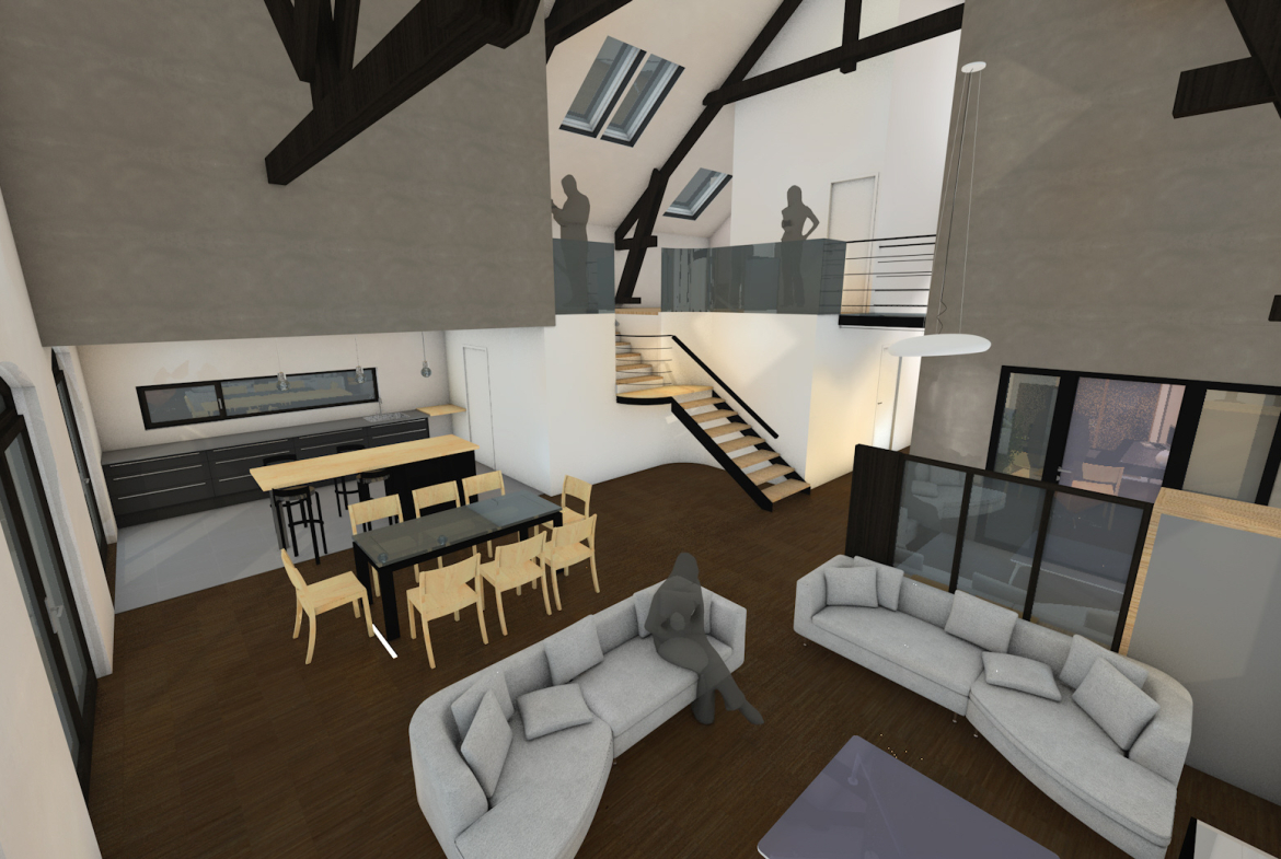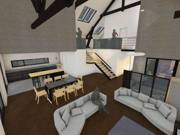 Partie habitable pour 230 m2 environ, très lumineuse. (Dont 31 m2 pour le gîte)