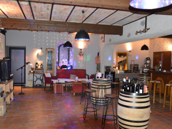 – Pièce libre 100 m2 environ chauffée et isolée, avec vouteaux en brique, bar en bois massif, sol carrelé. WC. Entrée indépendante et fenêtres. Idéal pour les réceptions. Accès à l’extérieur.
