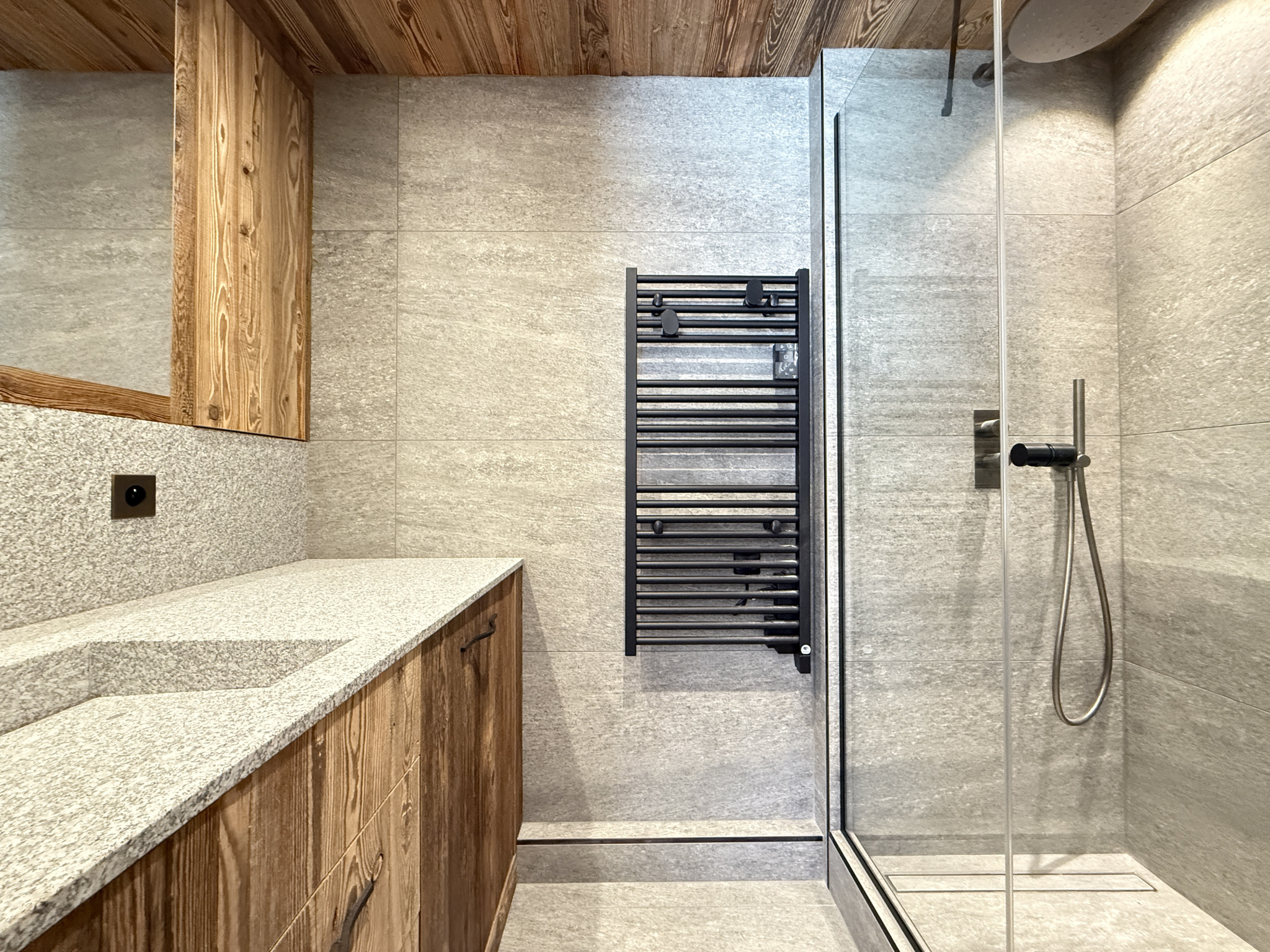 Très joliment et récemment rénové cette année, bénéficiant de nobles matériaux, il est composé de la façon suivante : une entrée desservant des toilettes séparées, une première chambre parentale, une cuisine, une deuxième chambre enfants, un séjour et salon donnant sur une très belle terrasse boisée et volumineue en L, orientée au Sud de face et à l’Ouest en retour.