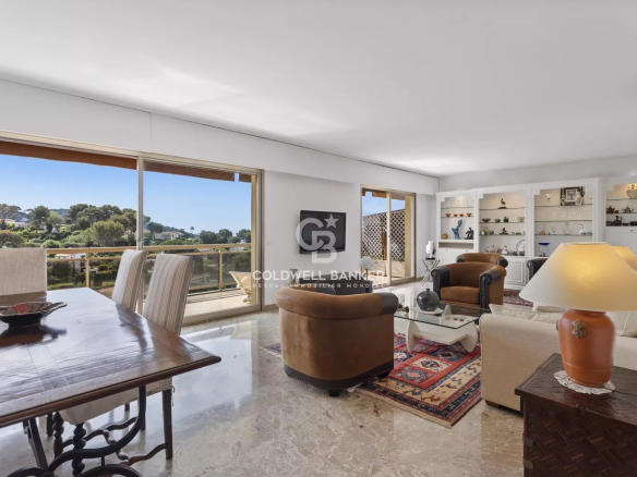 Au coeur d’une résidence sécurisée et prisée, superbe appartement traversant de plus de 100 M² vue mer et collines.