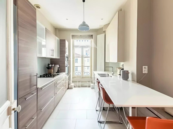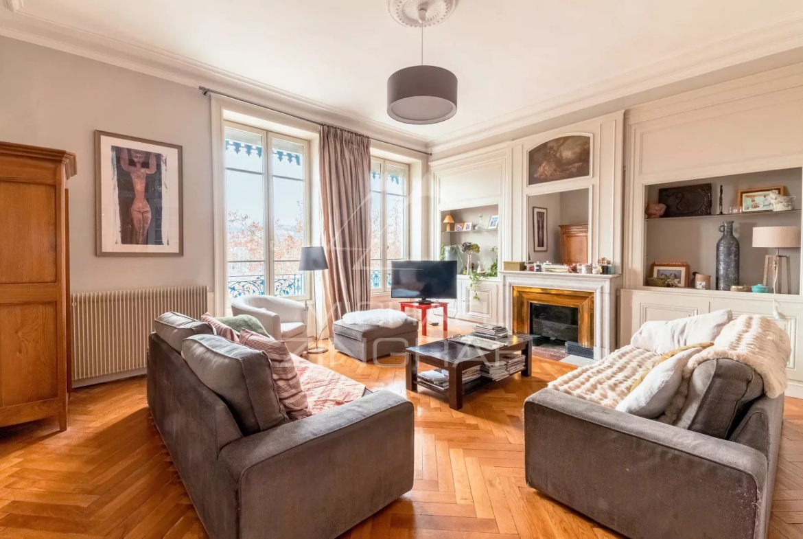 Une adresse, une vue ! Votre agence Michaël Zingraf vous propose sur les Berges du Rhône, un superbe appartement de style Haussmannien, de 213m2 (Carrez 188m2), sublimé par une belle rénovation et sa situation d’angle, offrant des volumes généreux et une vue imprenable sur le Rhône mais également sur Fourvière.