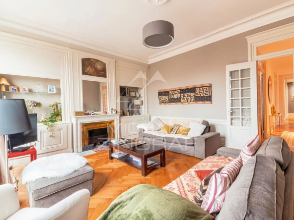 L’élégance intemporelle de cet appartement Haussmannien se caractérise par de beaux volumes, de grandes fenêtres générant une incroyable luminosité, des moulures élégantes, des parquets en bois massif, des cheminées en marbre. Les proportions sont harmonieuses, l’accent est mis sur l’esthétique et l’harmonie des lignes.