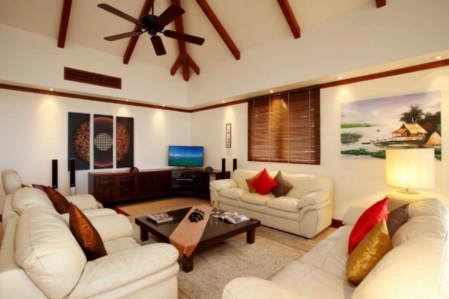 L’aménagement unique comprend un salon extérieur spacieux avec un grand pavillon ombragé et une belle piscine à débordement d’angle incurvé surplombant la mer d’Andaman, peut-être l’une des meilleures vues du domaine. Les quatre chambres ont un mélange de type de lit idéal pour les familles avec enfants. Les deux suites principales ont des lits king-size (le deuxième maître peut être changé en lits jumeaux) et des baignoires à remous divines dans la salle de bains, ainsi que des balcons, pour profiter de la vue. La troisième chambre a des lits jumeaux et un lit superposé, et la quatrième a deux lits simples qui peuvent être convertis en king-size, les deux chambres ont une salle de bains avec douche.