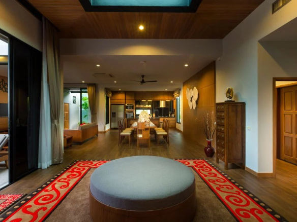 Surface sous toit : La surface sous toit de la propriété est de 380 mètres carrés. Cela inclut probablement les espaces de vie intérieurs comme les chambres, les salles de bains, la cuisine et les espaces de vie.